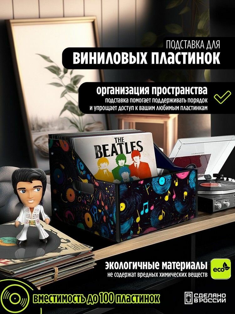 Купить Подставка (ящик, органайзер) для хранения виниловых пластинок с принтом "эстетика Музыка (ноты, фанк, пластинки) - 52504005"