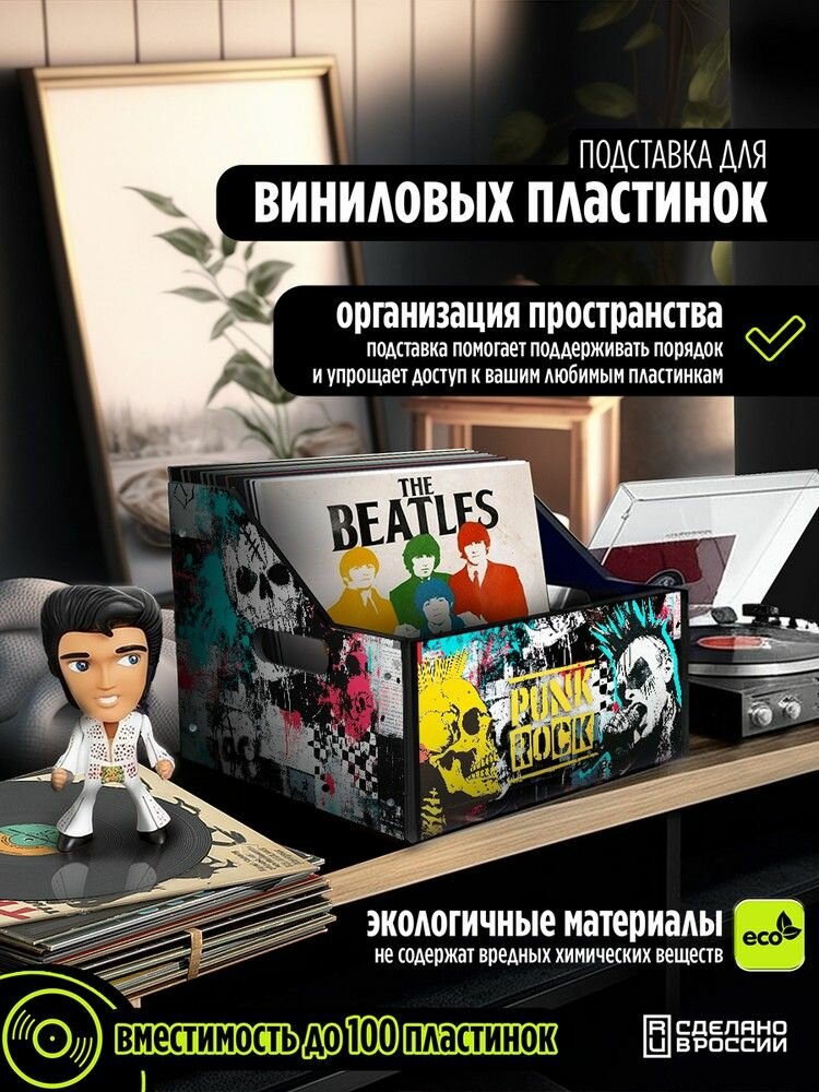 СохранитьПодставка (ящик, органайзер) для хранения виниловых пластинок с принтом "Разное панк рок (анархия, черепа, punk rock, sex pistols) - 425035" интересное: