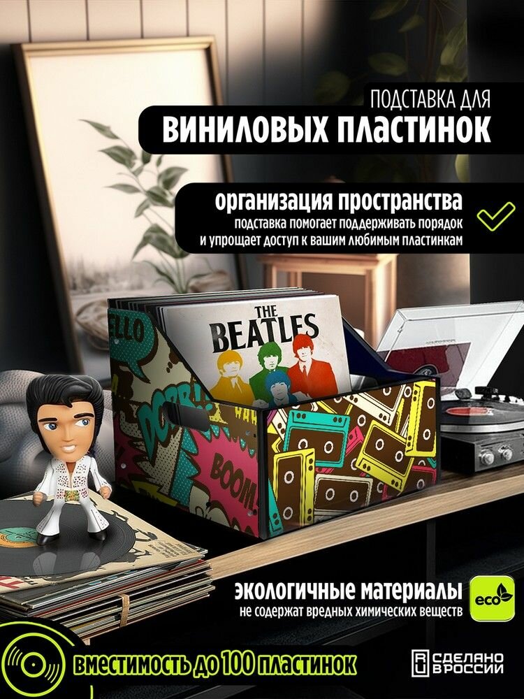 Купить Подставка (ящик, органайзер) для хранения виниловых пластинок с принтом "Разное поп арт(кассеты, комикс, бум, ретро, винтаж) - 425017"