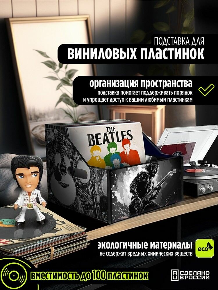 Подставка (ящик, органайзер) для хранения виниловых пластинок с принтом "Разное Музыка (Девид Боуи, Dawid Bowie, гитара, винил) - 6250452"