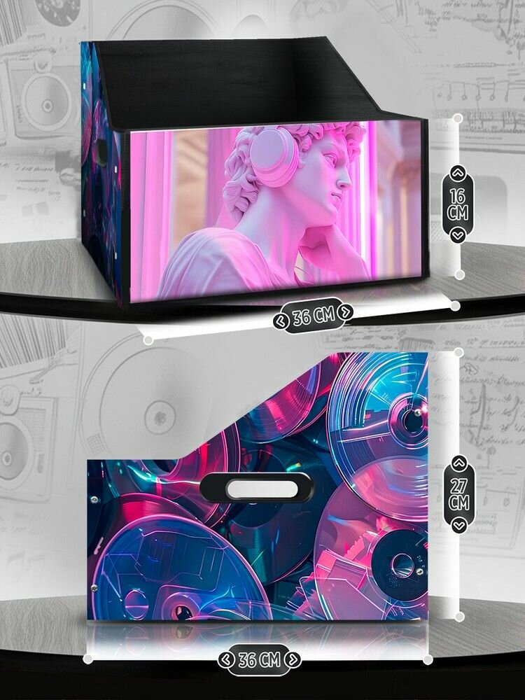 Купить Подставка (ящик, органайзер) для хранения виниловых пластинок с принтом "Разное Искусство (Давид, статуя, наушники, виниловая пластинка) - 62503397"