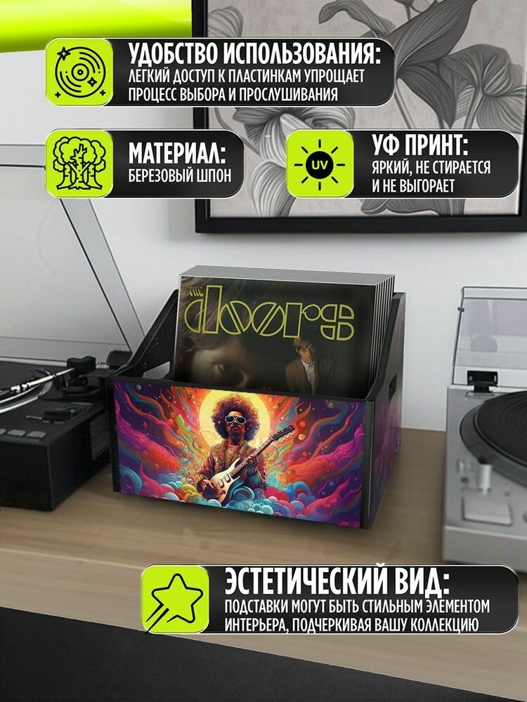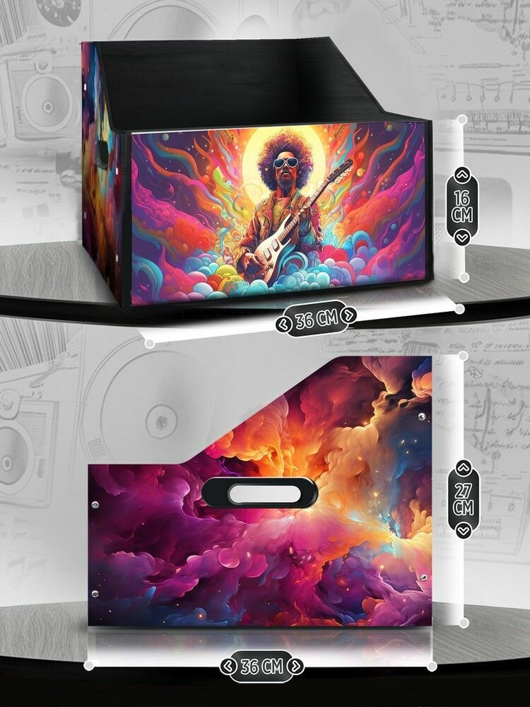 Подставка (ящик, органайзер) для хранения виниловых пластинок с принтом "Разное Космос (психоделика, ретро автобус, цветы, скелет ) - 425036"