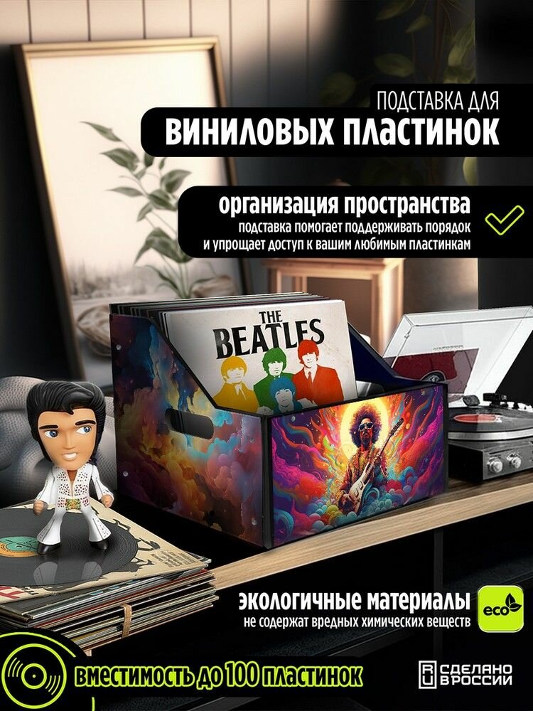 Подставка (ящик, органайзер) для хранения виниловых пластинок с принтом "Разное Музыка (Девид Боуи, Dawid Bowie, гитара, винил) - 6250451"