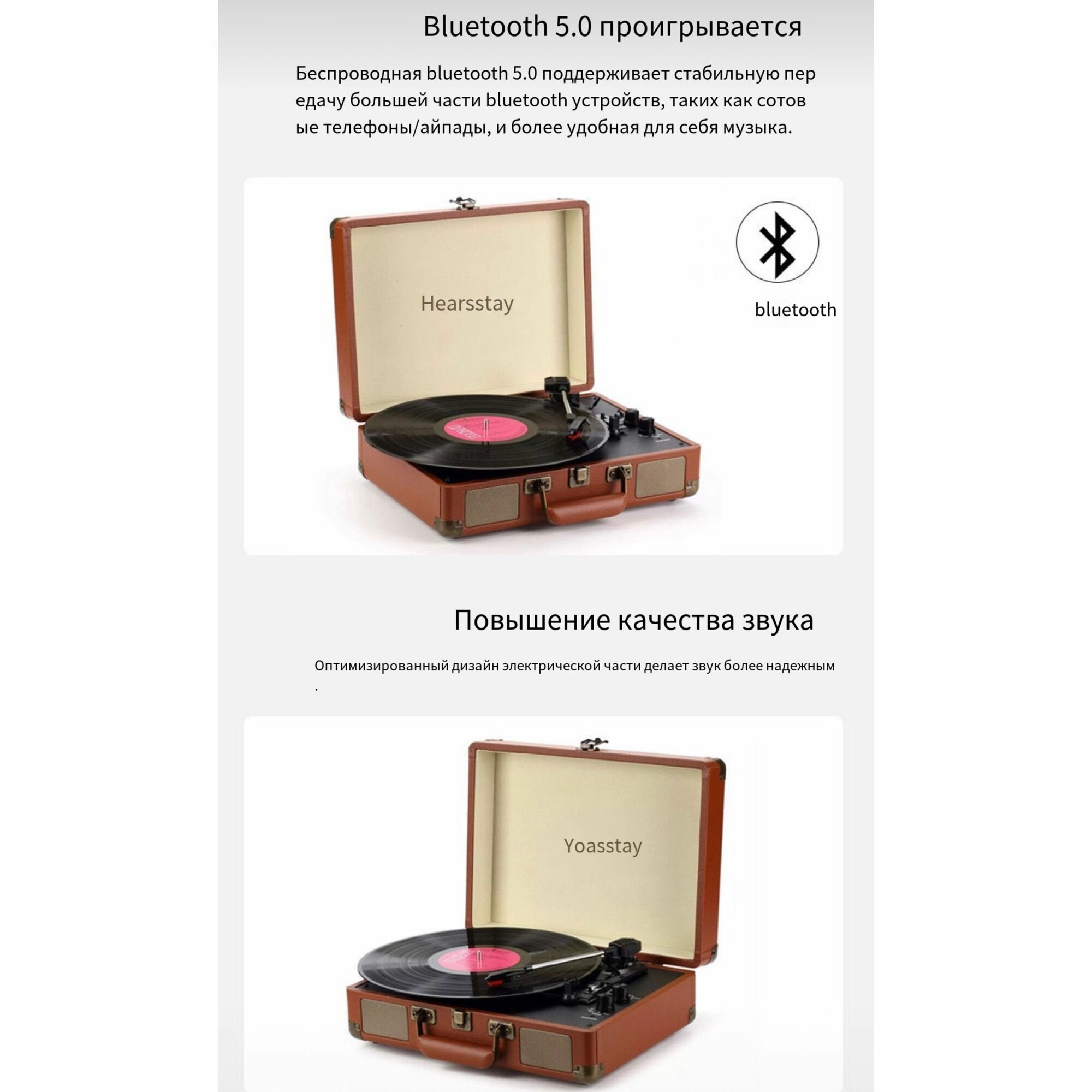 Платиновый проигрыватель, с поддержкой Bluetooth, в корпусе-чемодан, удобен в транспортировке интересное: