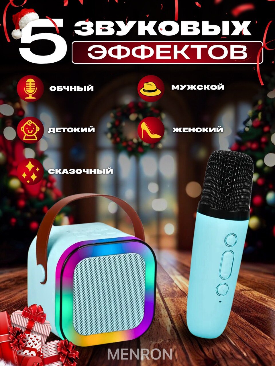 Караоке система с двумя беспроводными микрофонами и колонкой (синий) интересное: