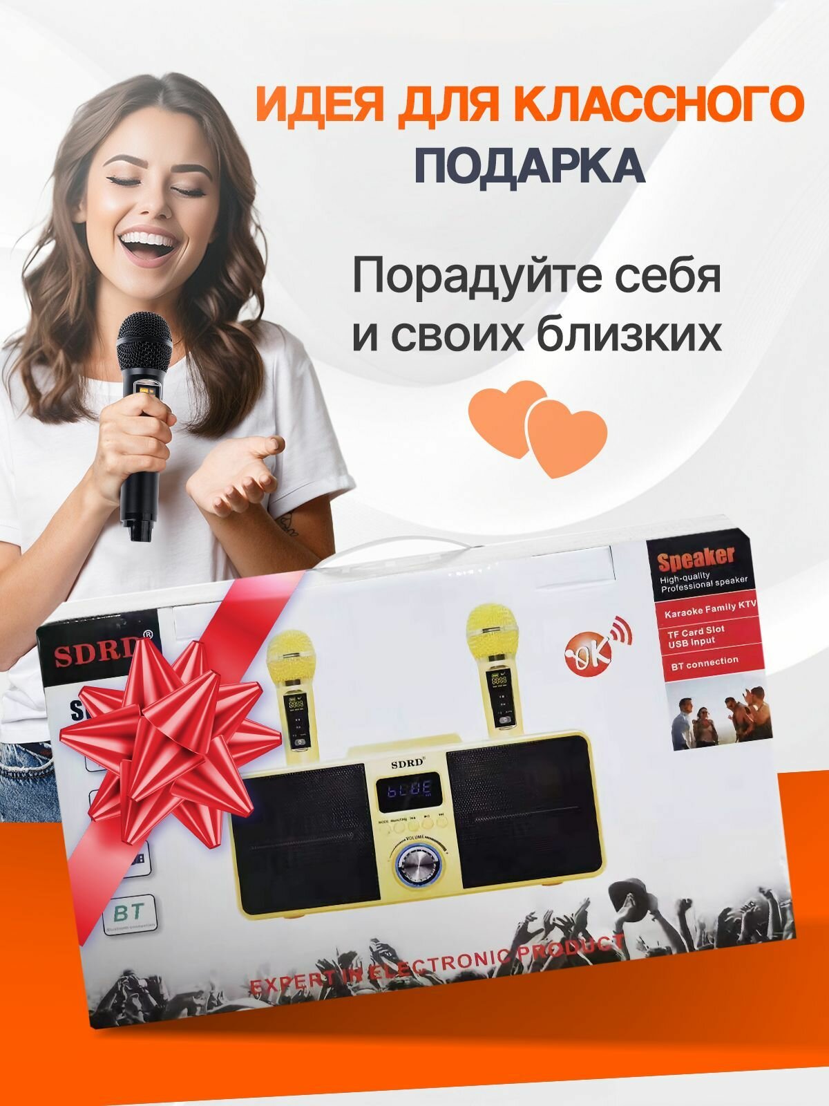 Купить Караоке система SDRD с двумя микрофонами, с функцией Bluetooth и USB разъемом