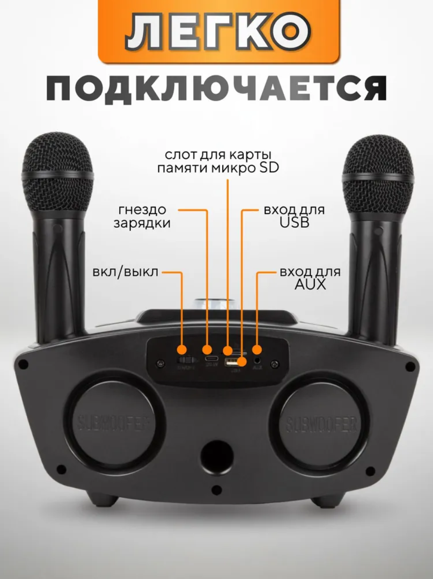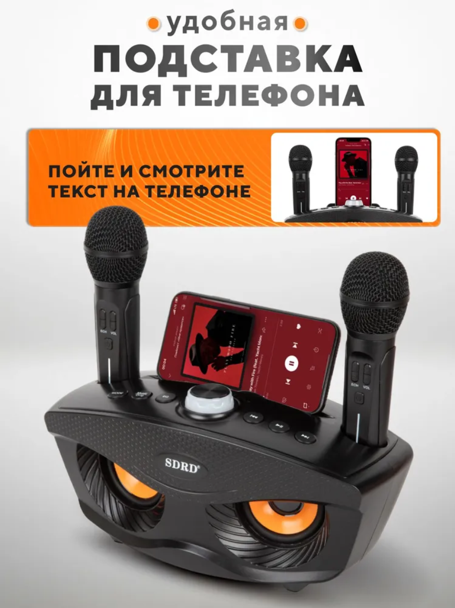 Караоке-система с двумя беспроводными микрофонами "SD-306" черная