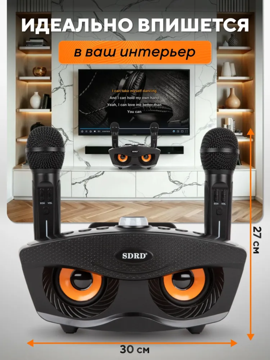 Караоке система с двумя беспроводными микрофонами "SD-309" черная