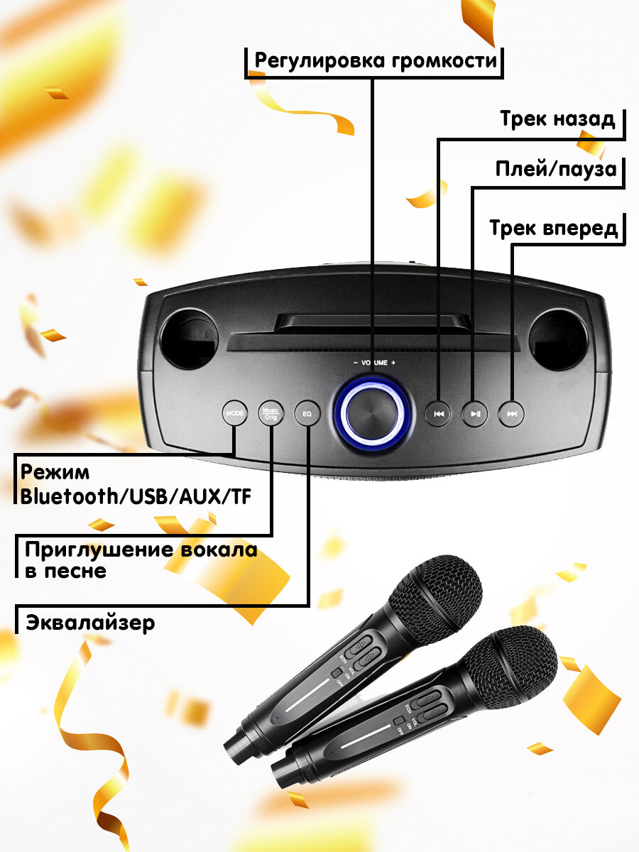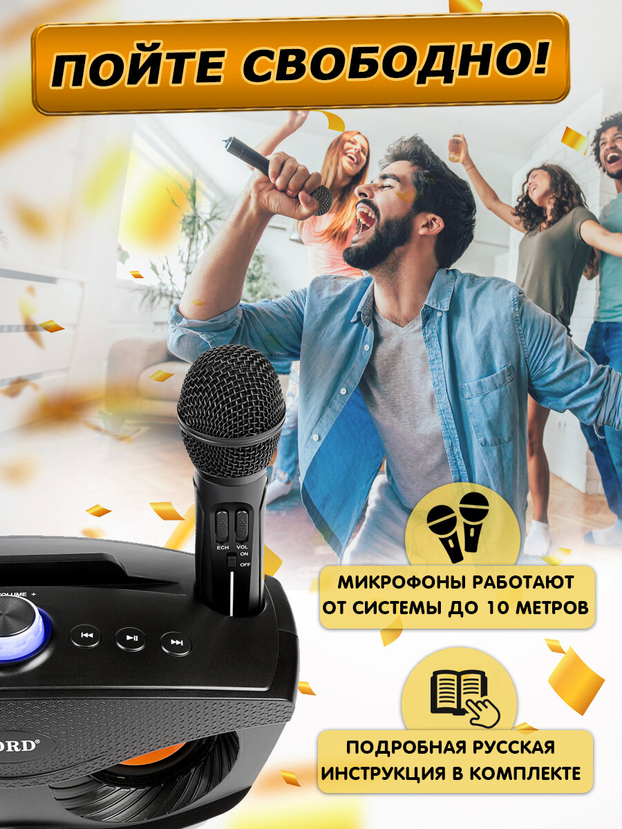 Купить Караоке-система с двумя беспроводными микрофонами "SD-306" черная