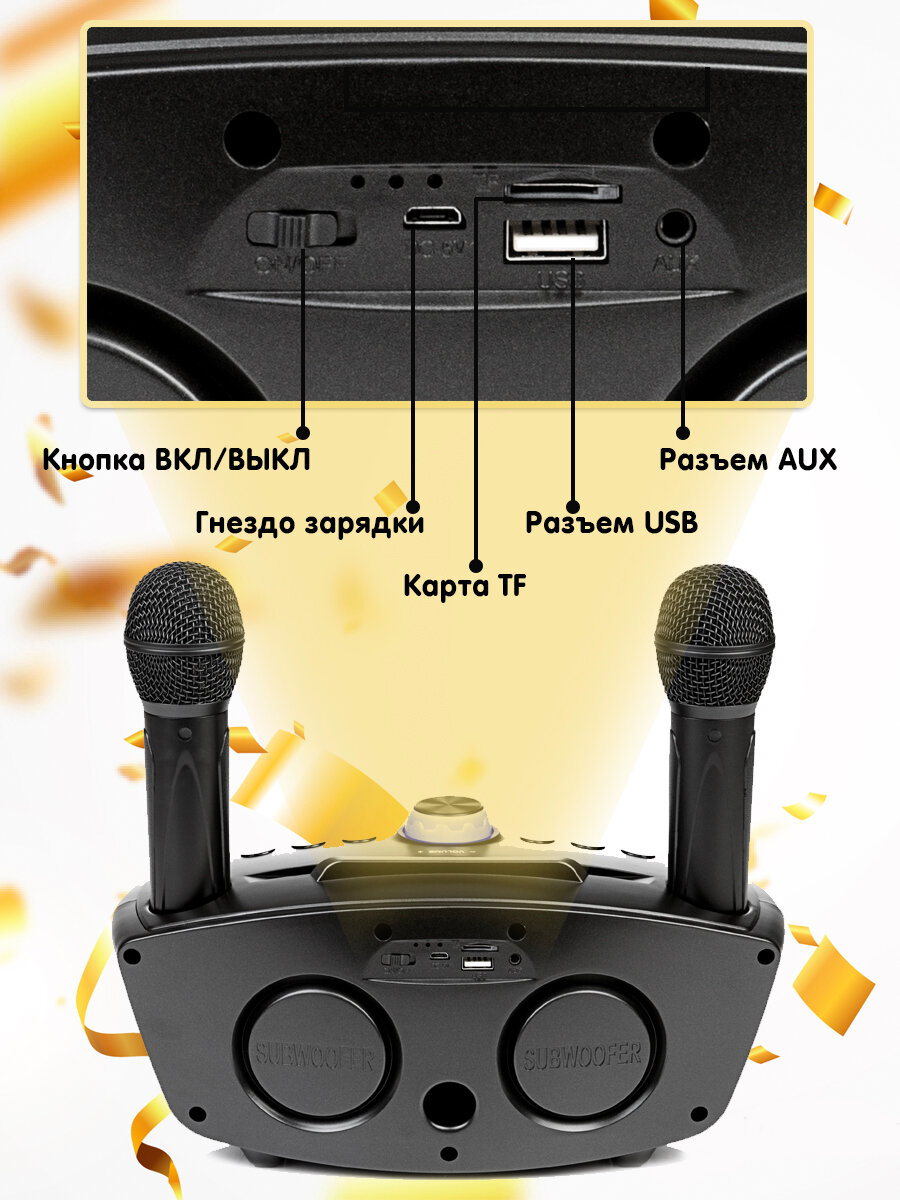 Караоке система с двумя беспроводными микрофонами "SD-306 PLUS" золотая