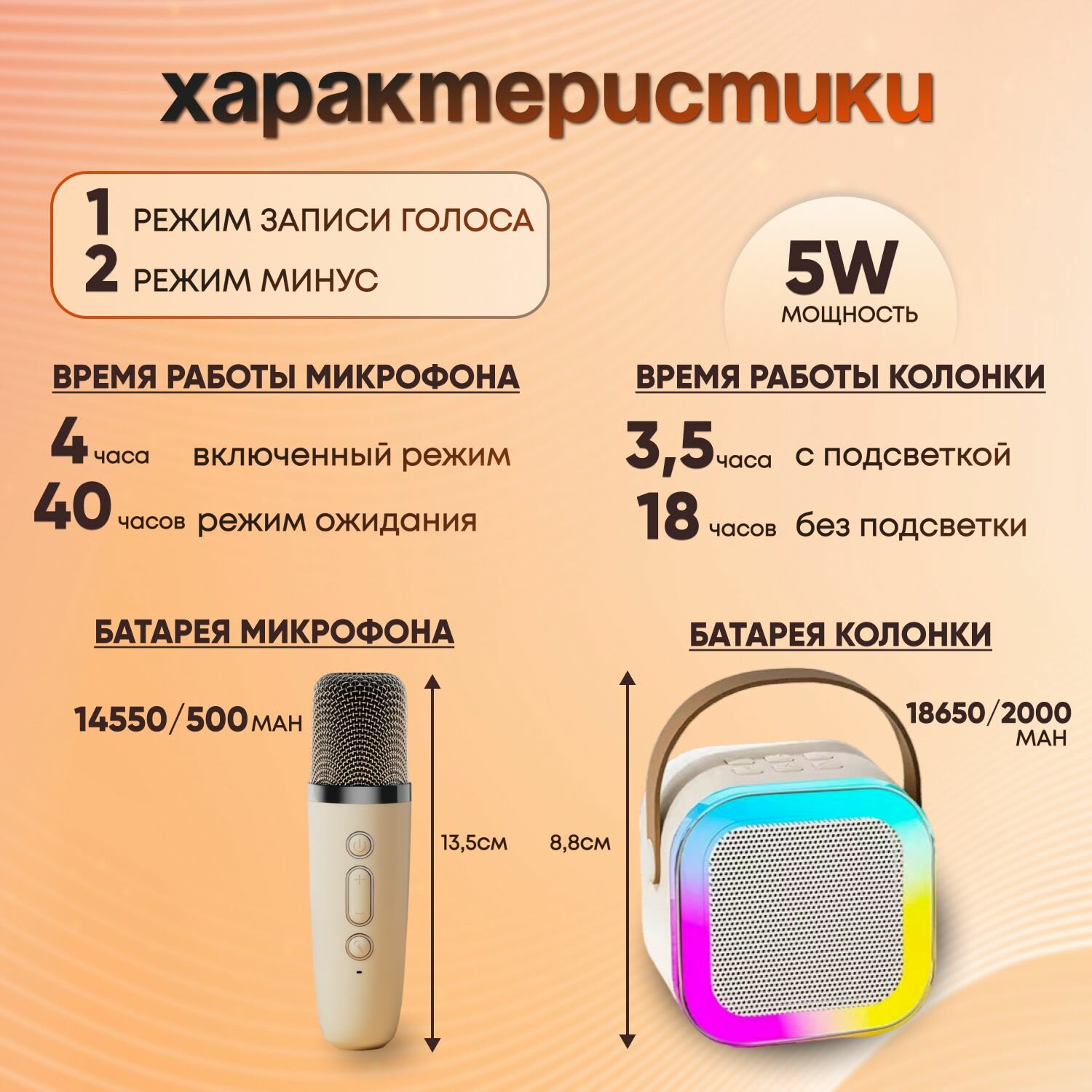 Детская караоке система с двумя беспроводными микрофонами и колонкой (бежевый) интересное: