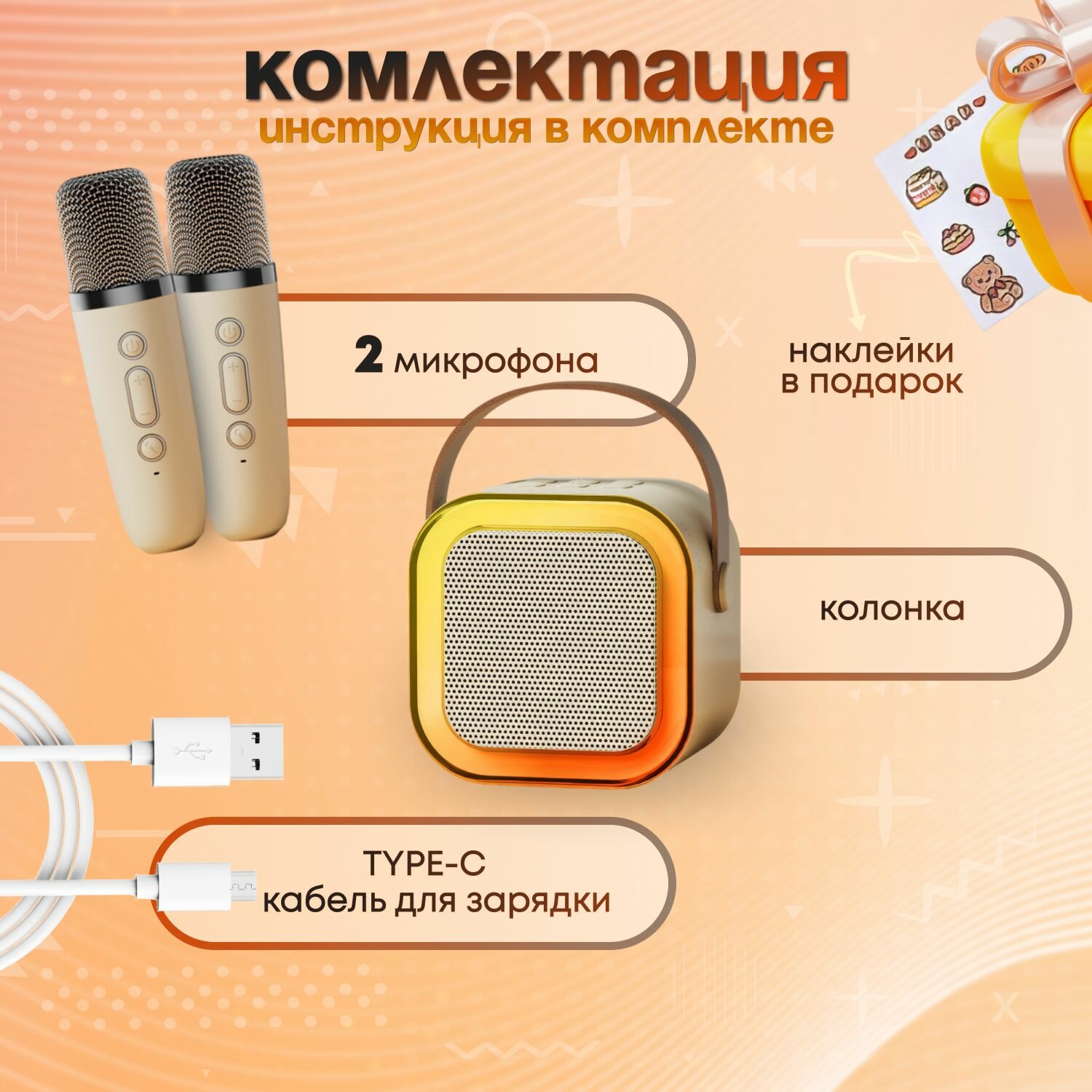 Купить Детская караоке система с двумя беспроводными микрофонами и колонкой (бежевый)