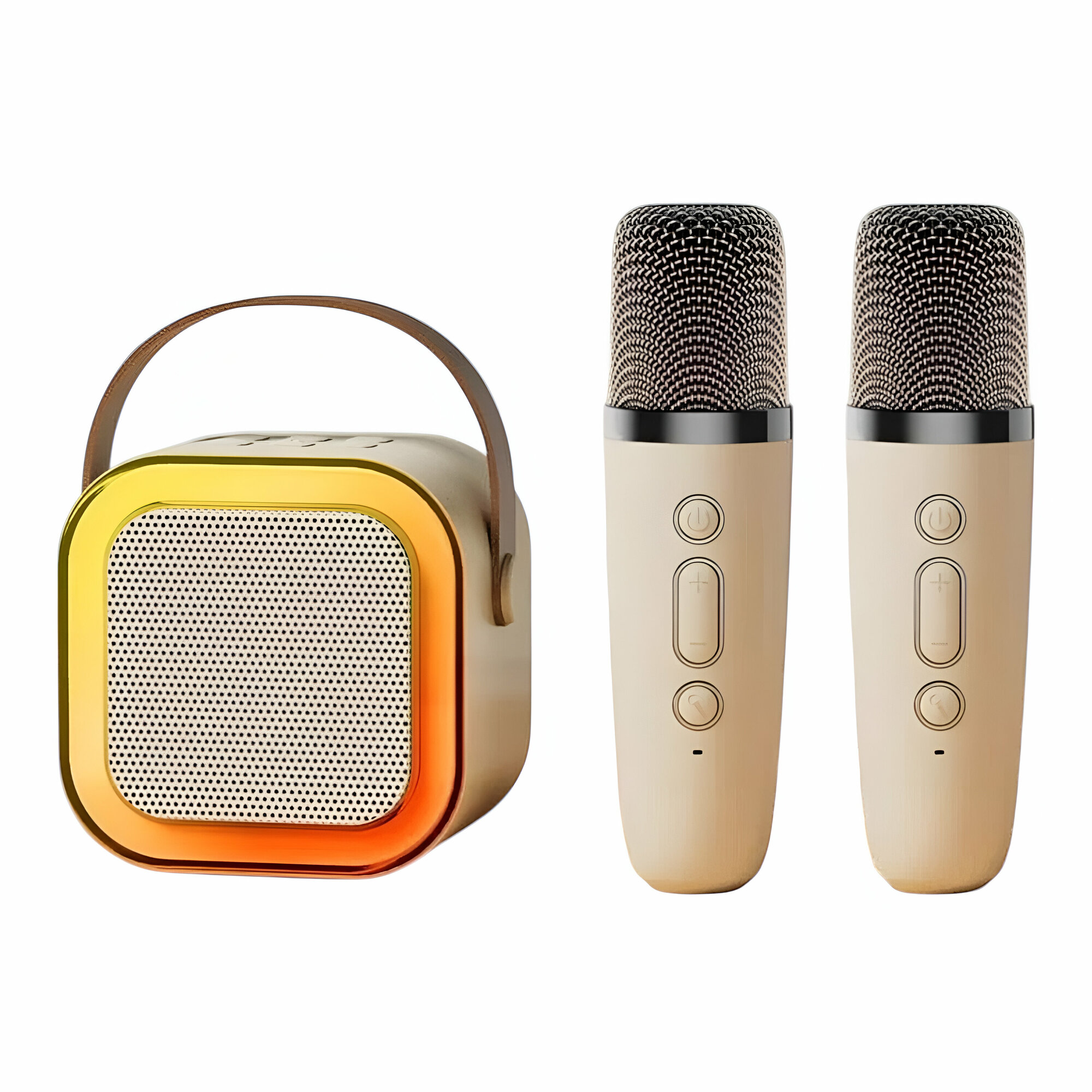 Купить Детская караоке система/Караоке система с двумя беспроводными микрофонами и колонкой/(Беспроводной, Живой вокал, Портативная колонка) бежевый