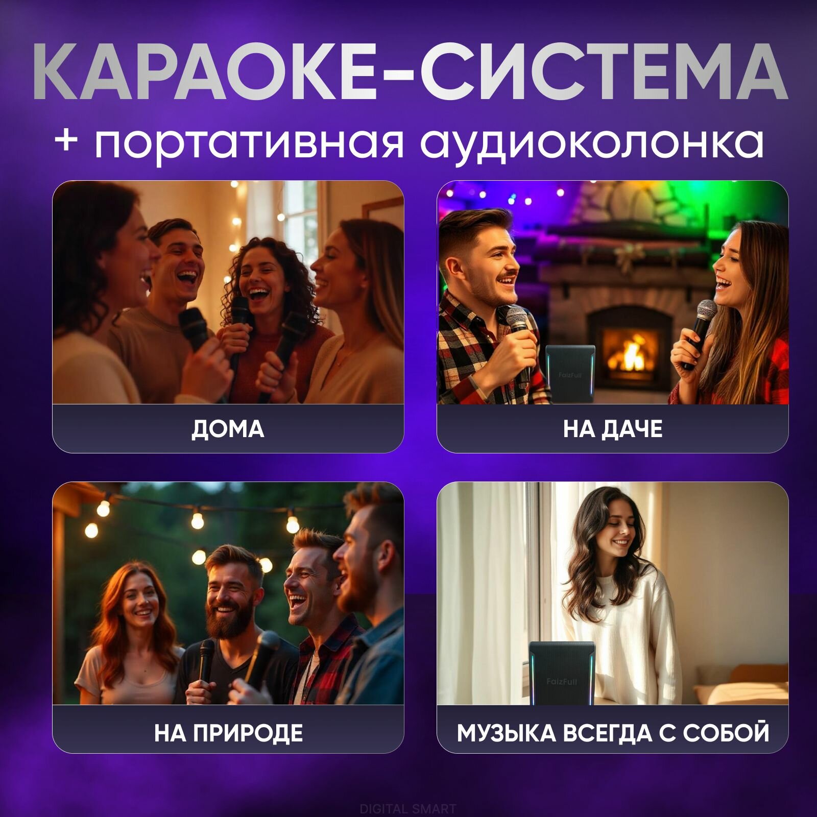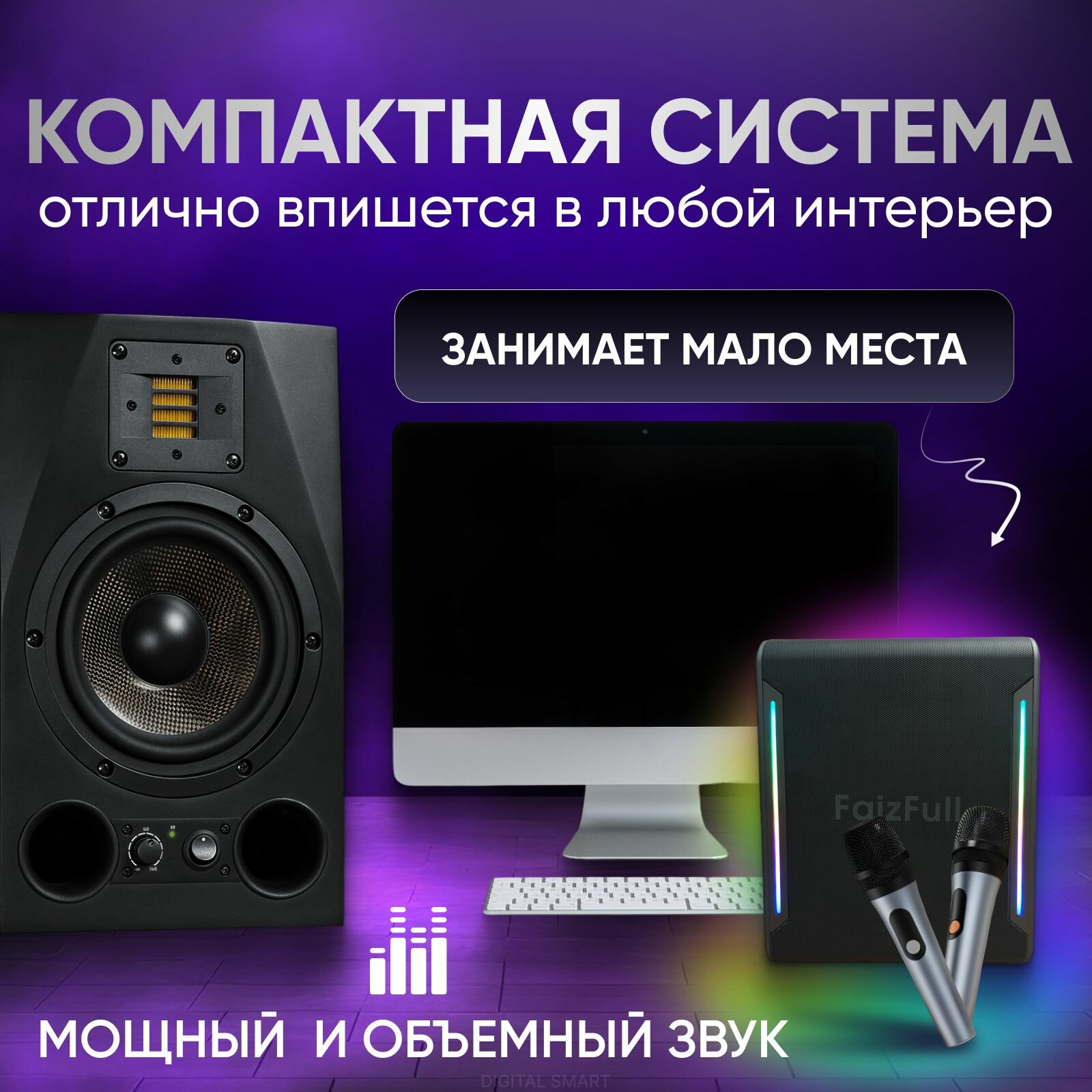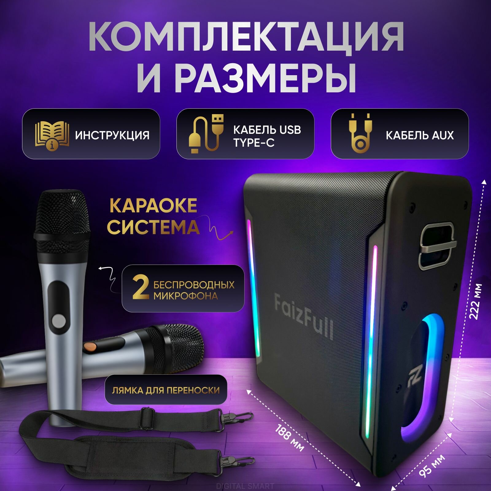 Караоке система с двумя микрофонами, караоке колонка 80W, RGB интересное: