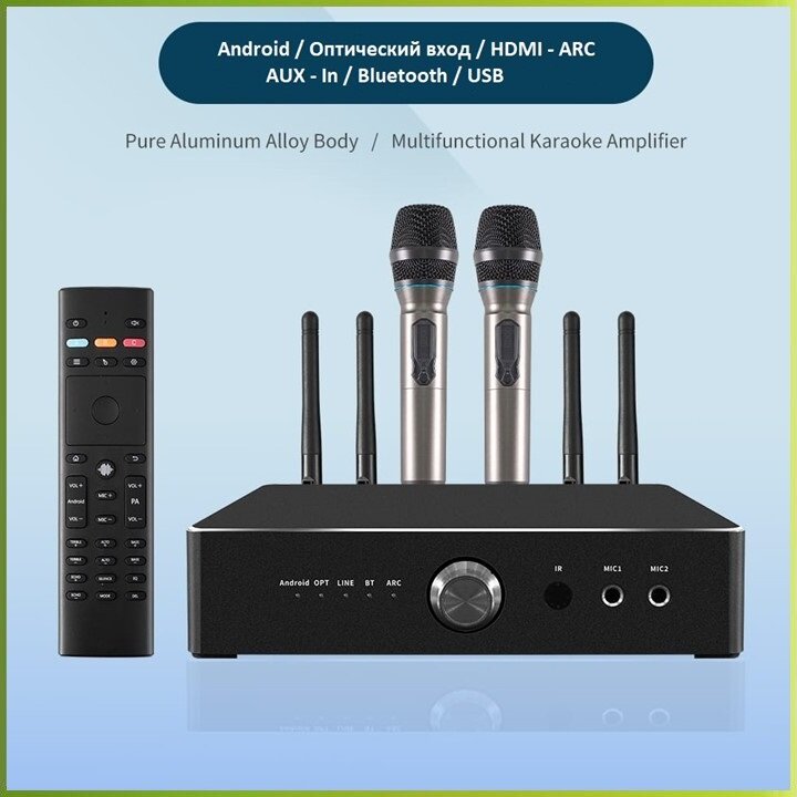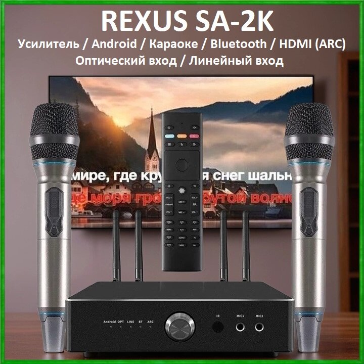 REXUS SA-2K (300Вт) - караоке усилитель, 300Вт, ANDROID, Bluetooth, HDMI, Optical, 2 радиомикрофона интересное: