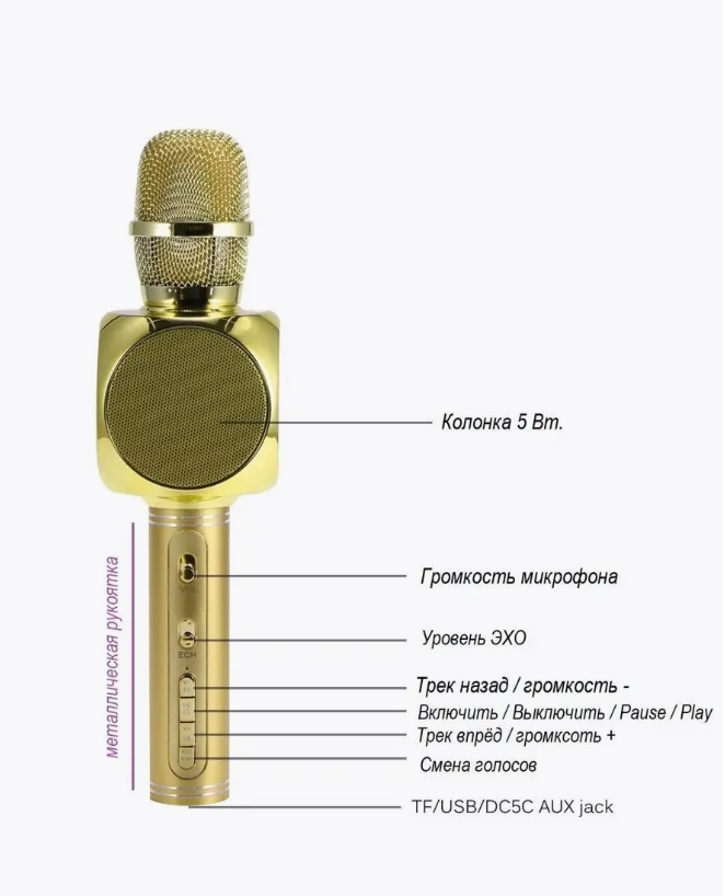 Беспроводной караоке-микрофон SU.YOSD Magic Karaoke YS-63, эхо, золотой интересное: