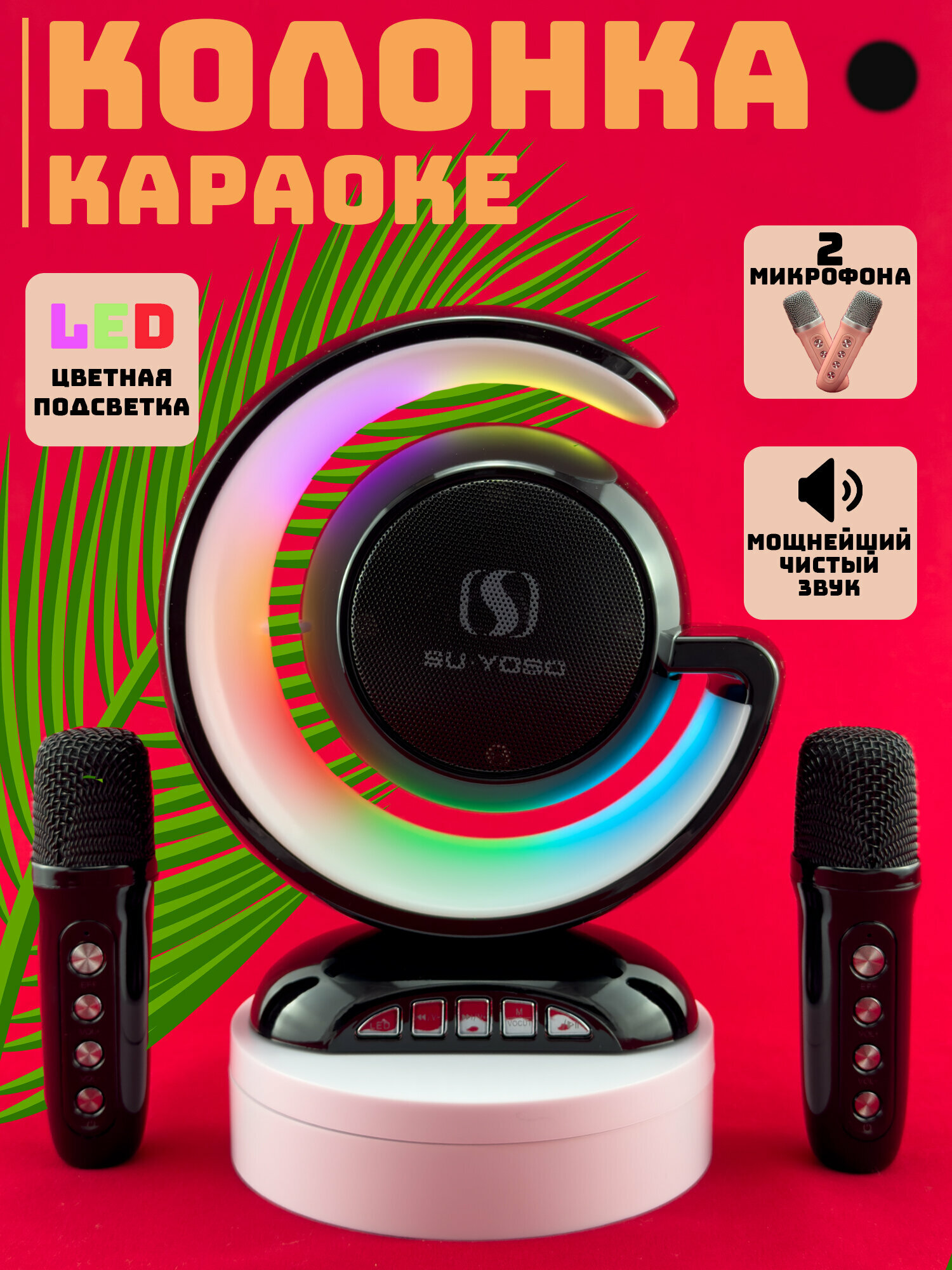 Караоке-система с LED-подсветкой и двумя микрофонами черный интересное: