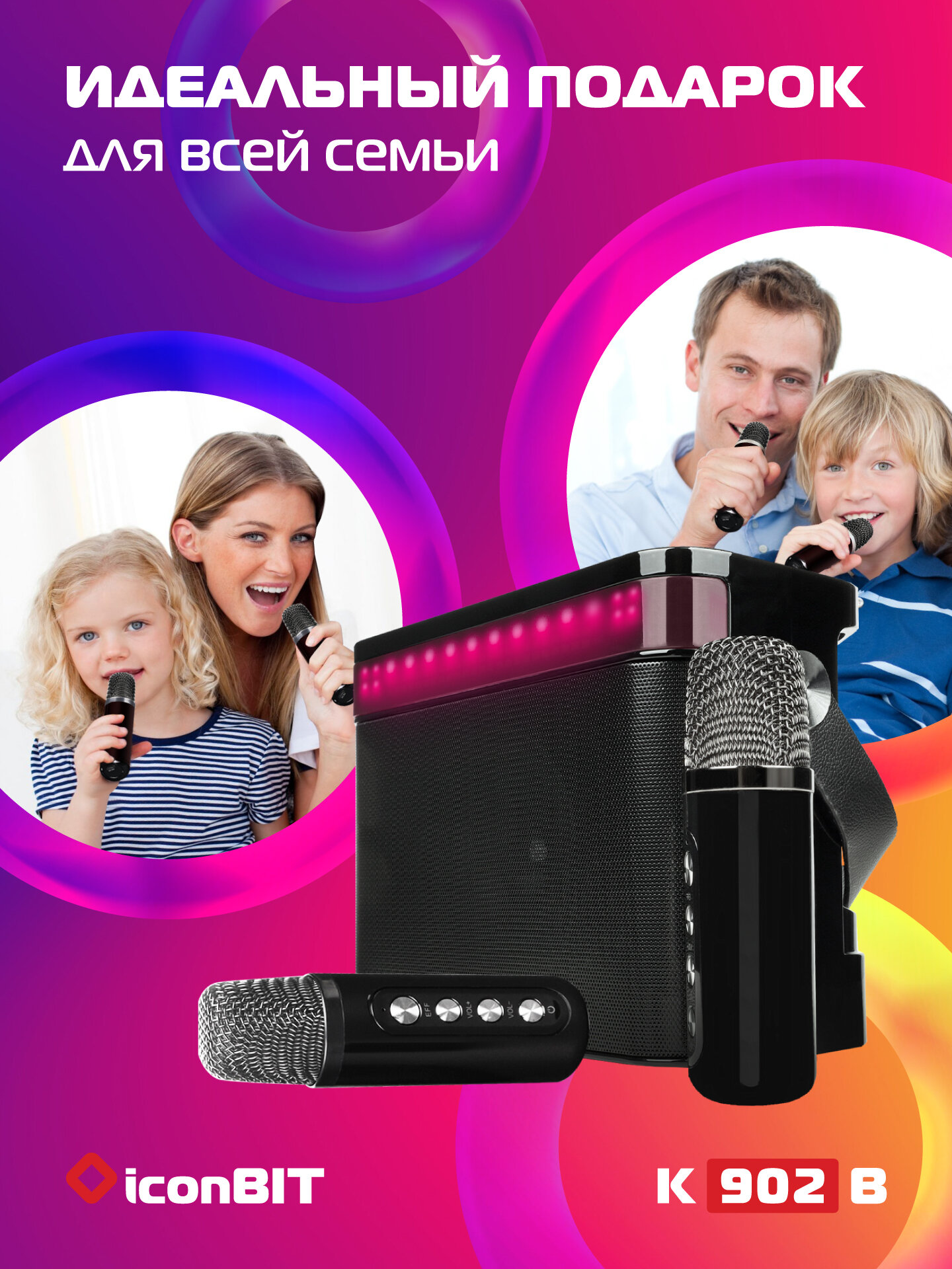 Купить Переносная караоке-система IconBit K902B с двумя микрофонами и аккумулятором, 10 Вт