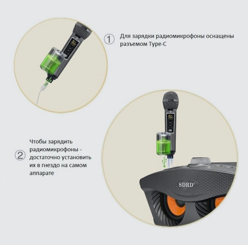 Караоке система с двумя микрофонами SDRD "SD-306 Plus", беспроводная, 30Вт, интересное: