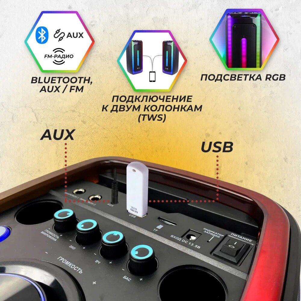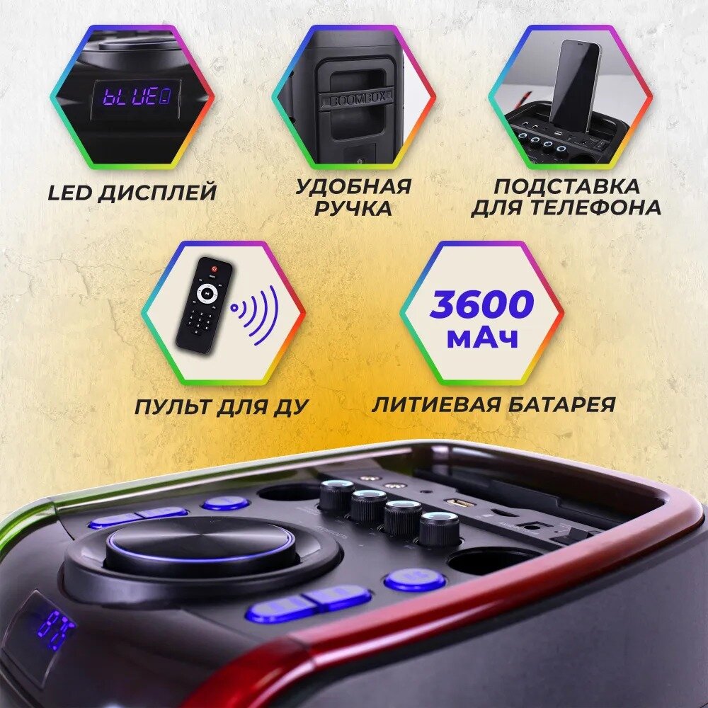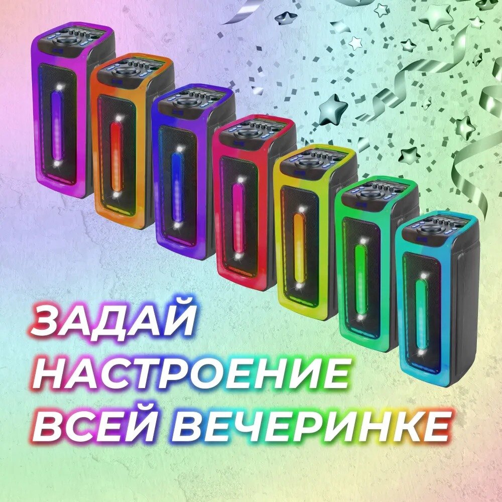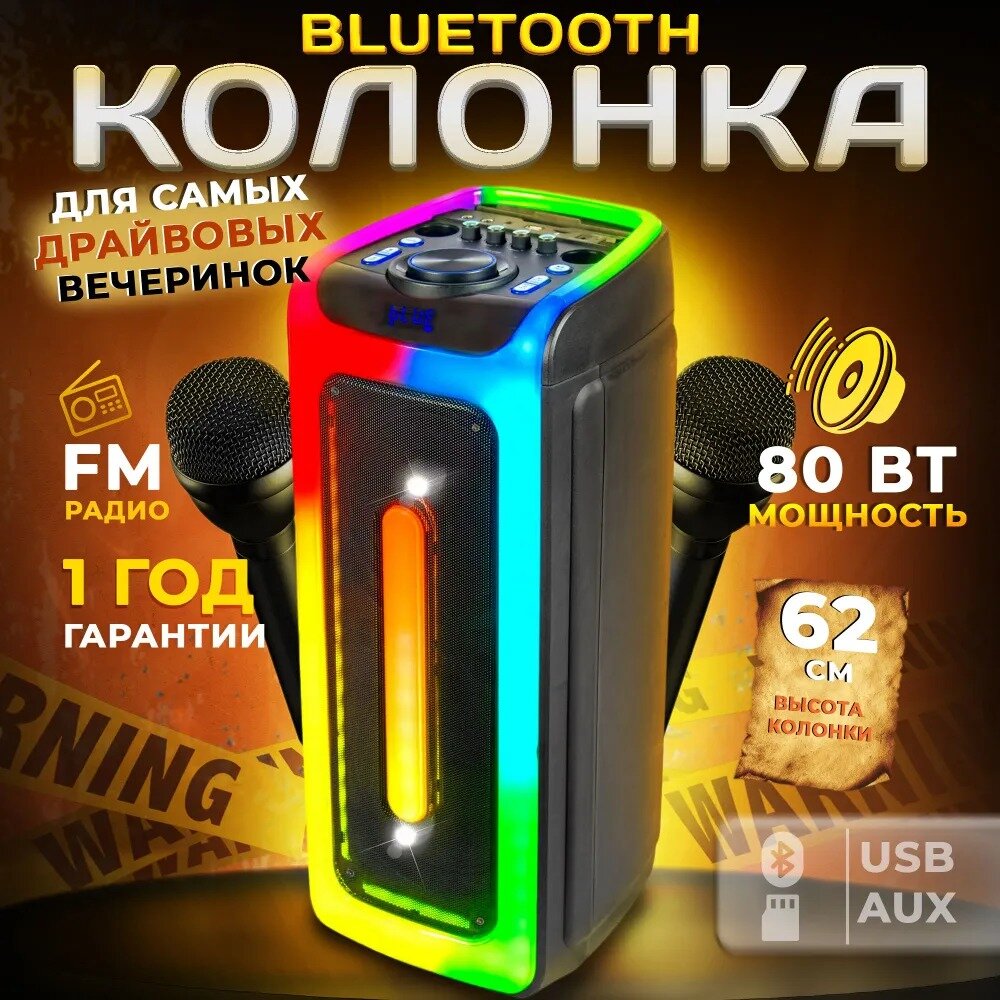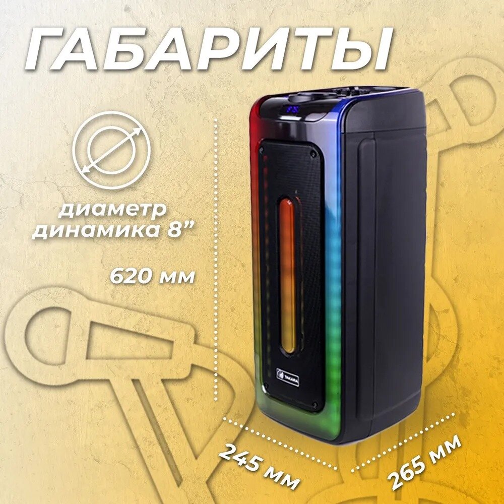 Колонка Takara Party 80Вт с подсветкой и 2-мя микрофонами интересное: