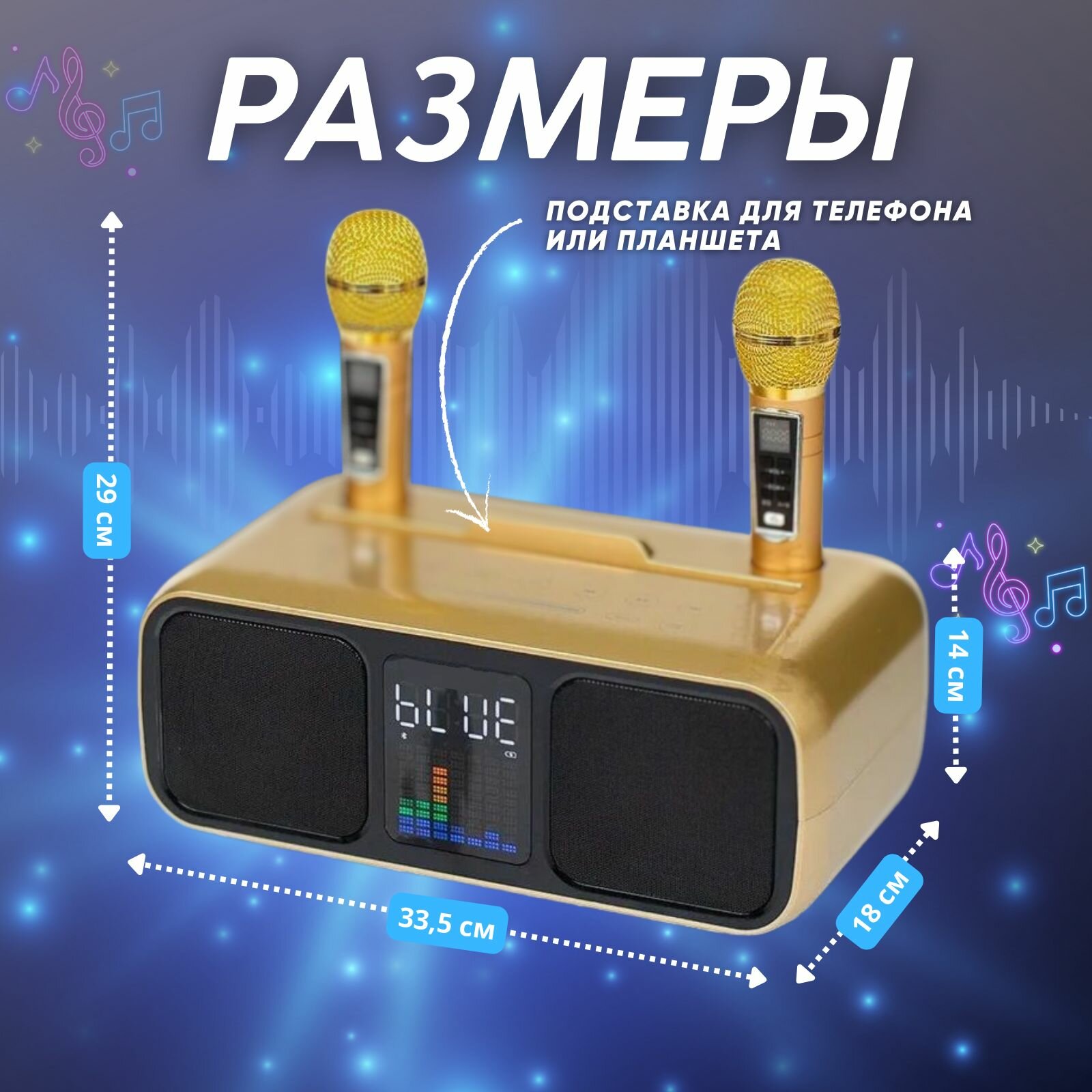 Колонка караоке с двумя микрофонами SD золотая интересное: