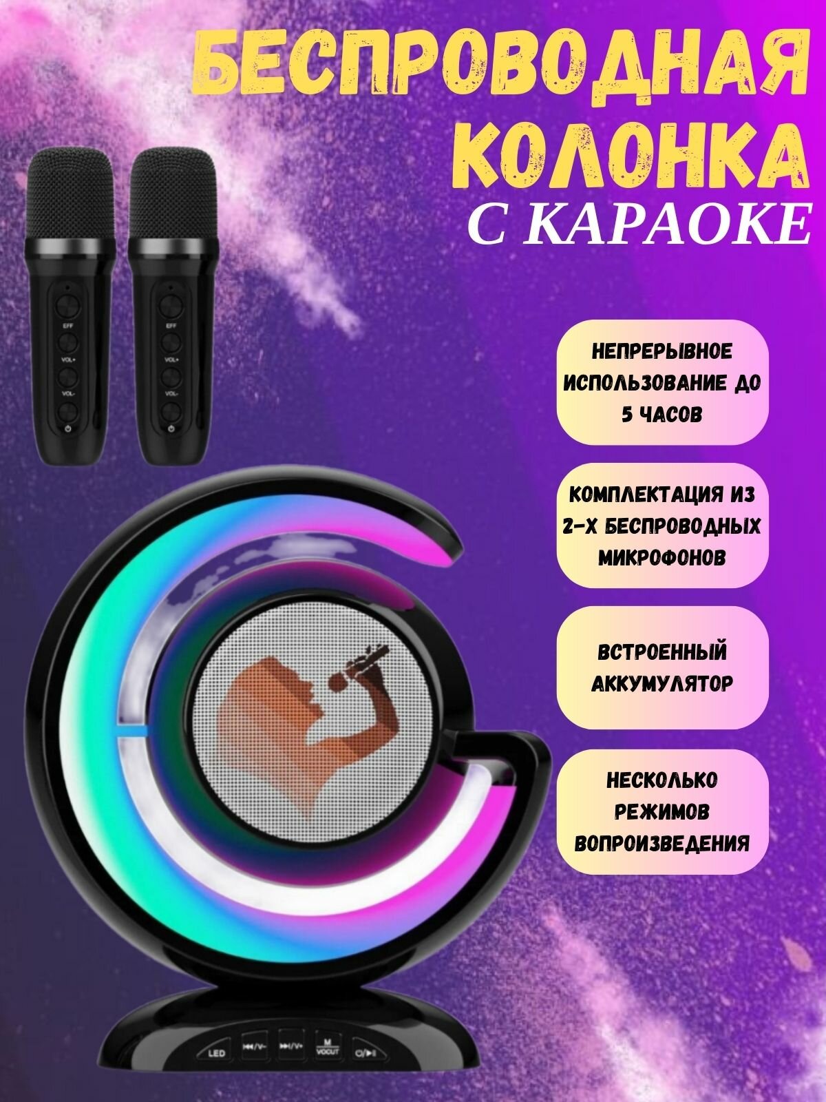 Колонка караоке с 2 микрофонами и подсветкой интересное: