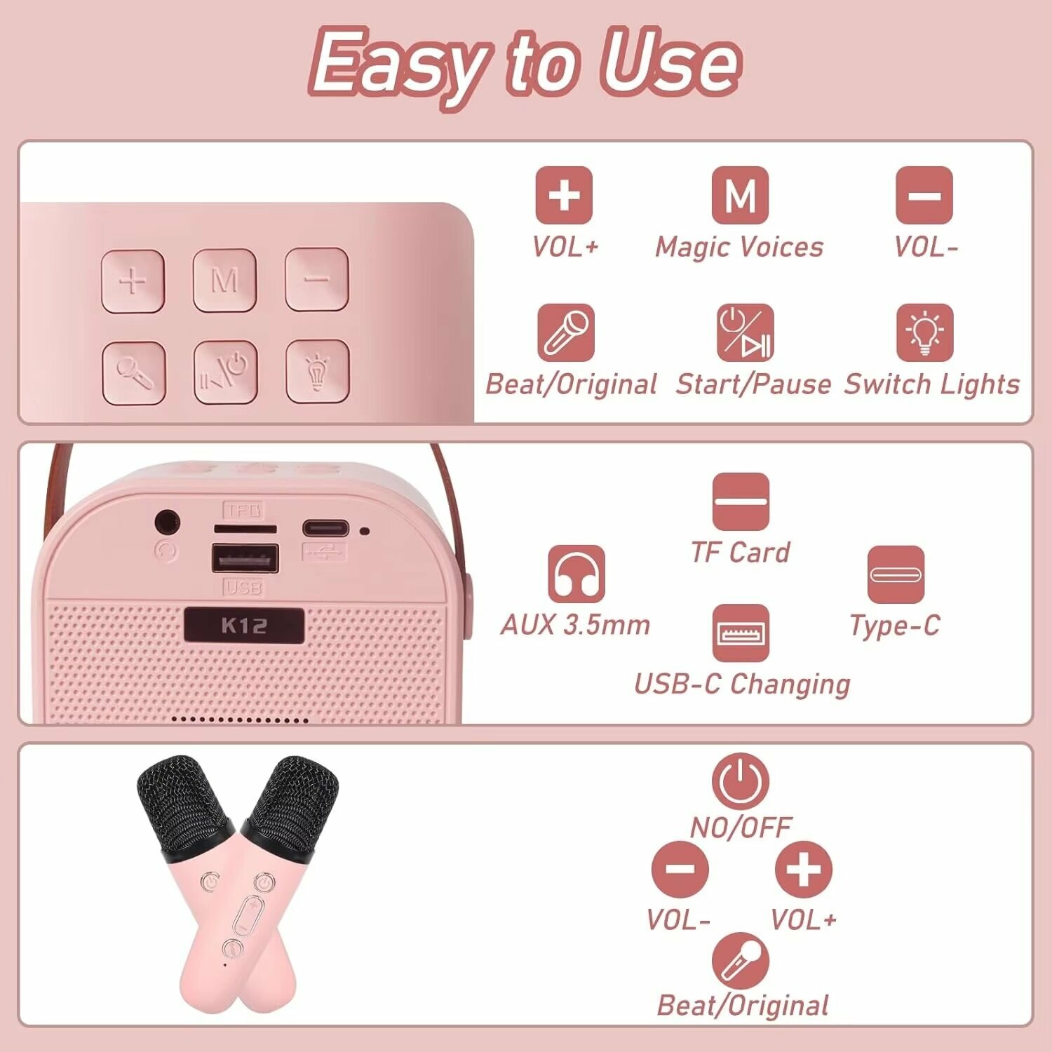 Портативная детская караоке система SP-100 с беспроводными микрофонами