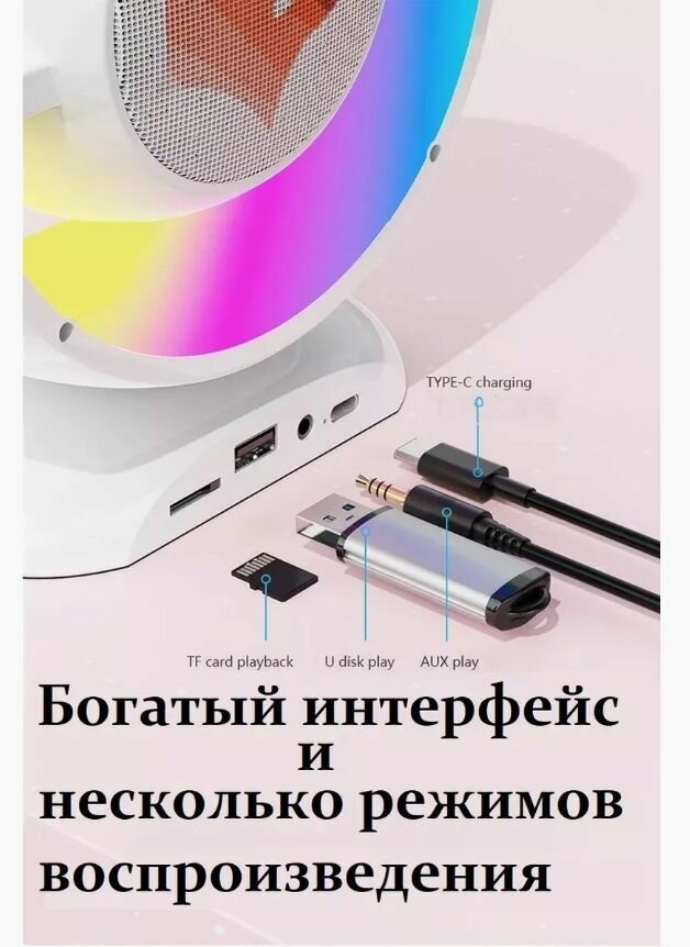 Колонка караоке с 2 микрофонами, умный светильник, ночник, Bluetooth интересное: