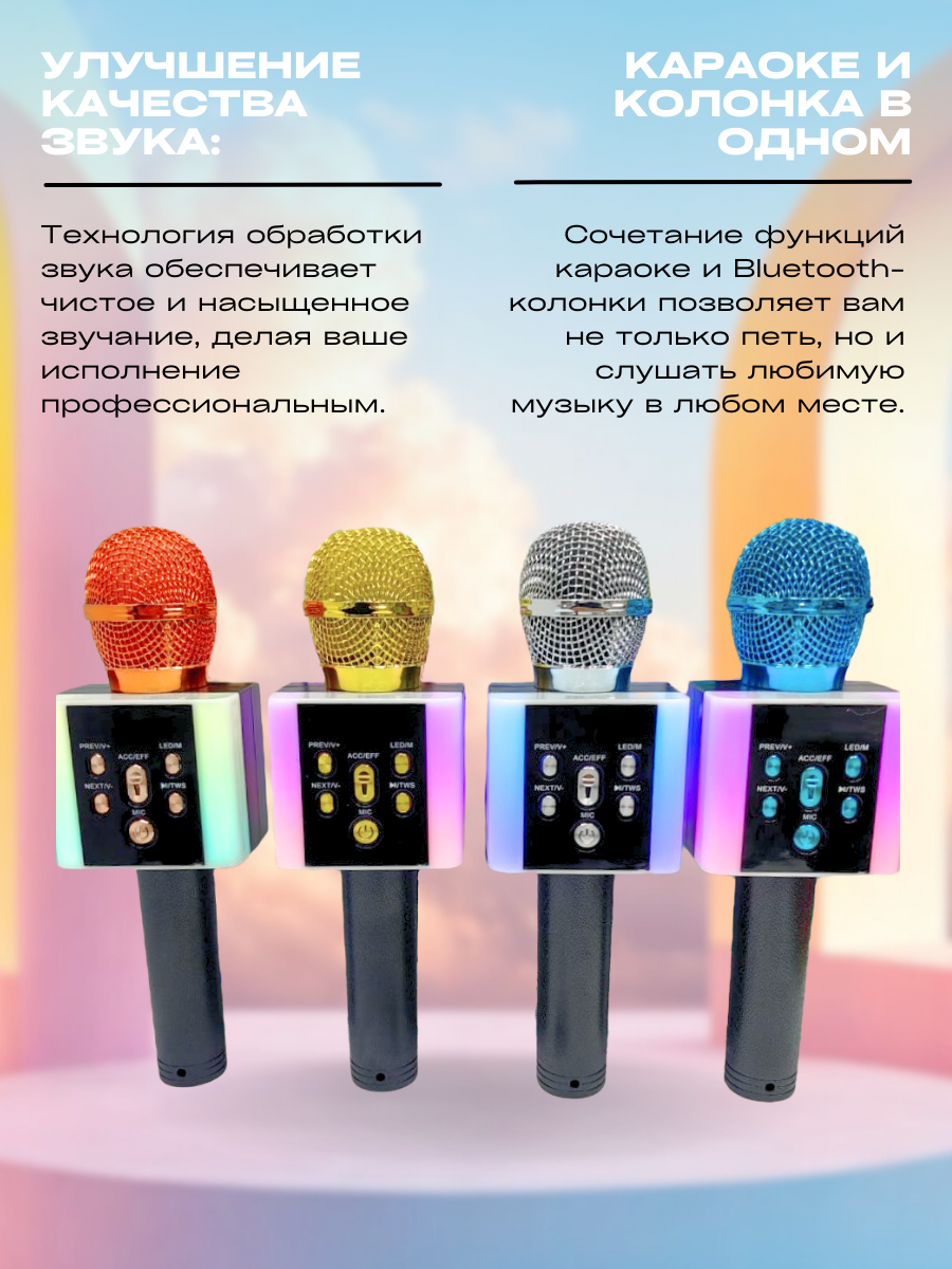 Беспроводной караоке микрофон BigShop32 с подсветкой и блютуз интересное:
