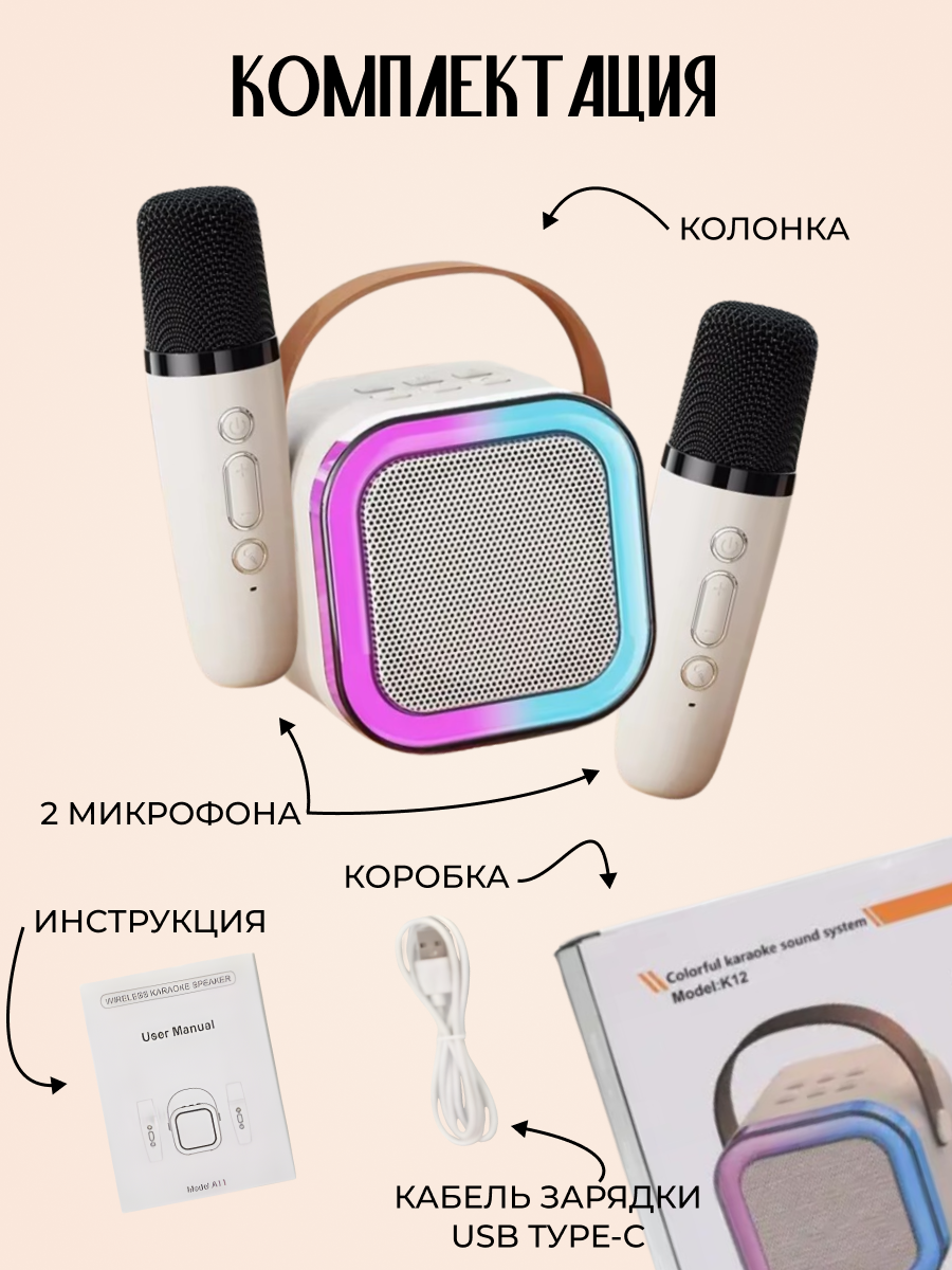 Колонка беспроводная караоке для детей 2 микрофона портативная интересное: