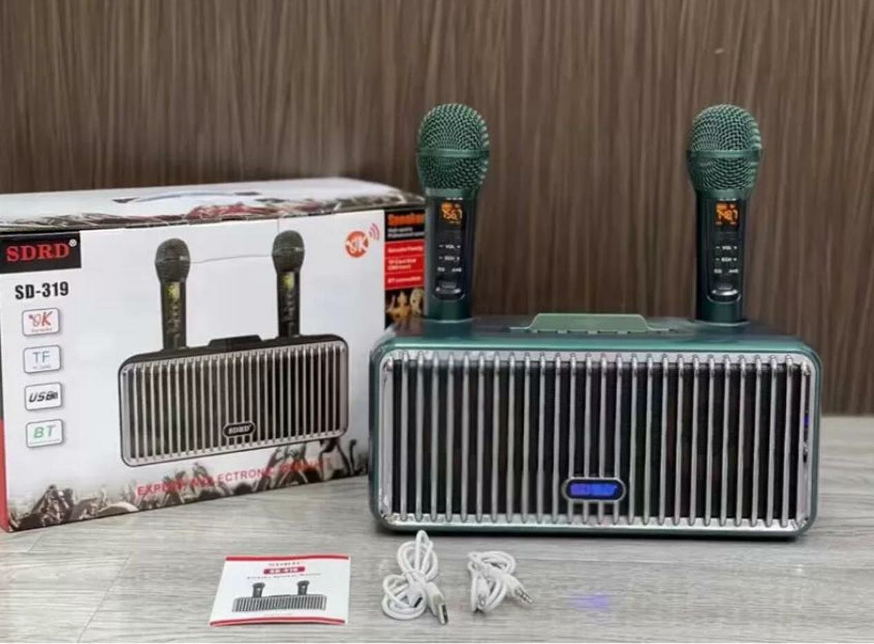 Беспроводная караоке система 319, с двумя беспроводными микрофонами интересное: