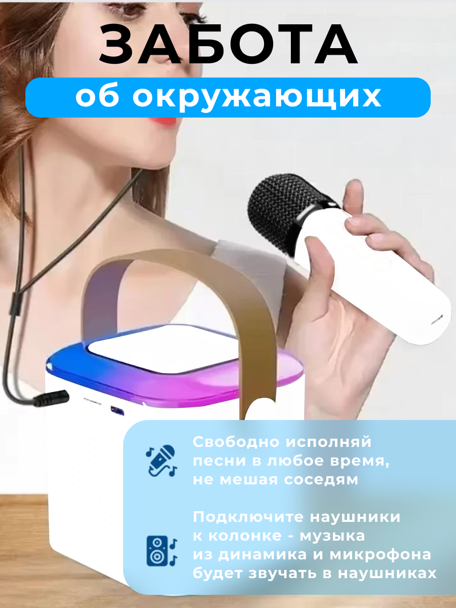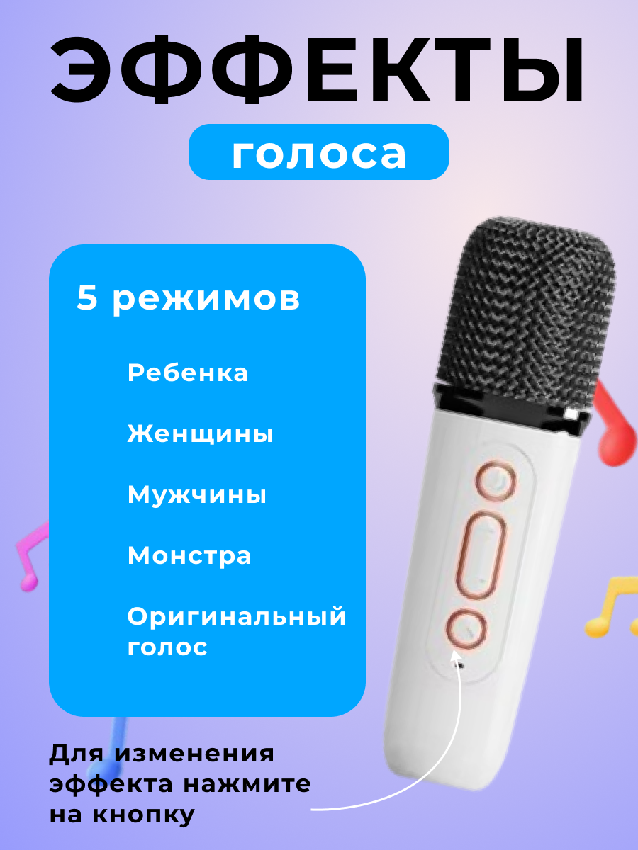 Детское беспроводное караоке с двумя микрофонами и колонкой, с RGB-подсветкой, цвет белый интересное: