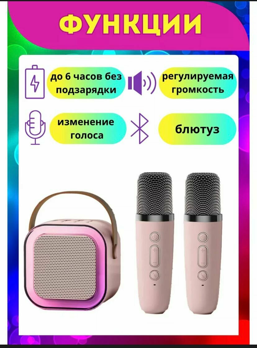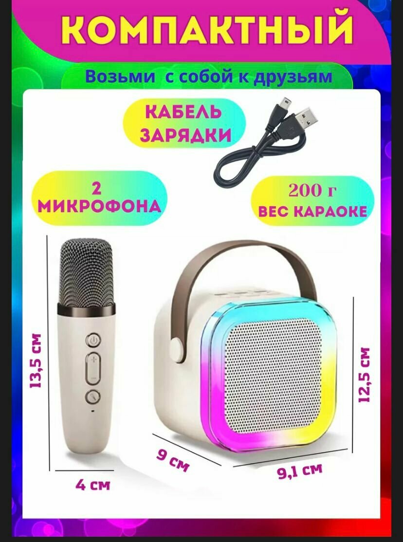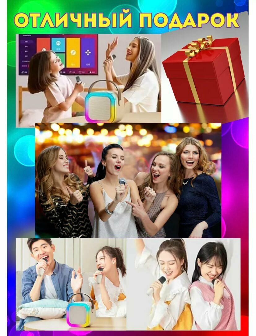 Портативная колонка с двумя микрофонами для караоке и подсветкой интересное: