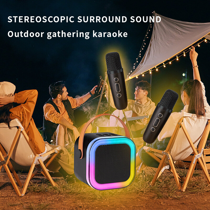 Караоке-система, с двумя беспроводными микрофонами и RGB-подсветкой, черная интересное: