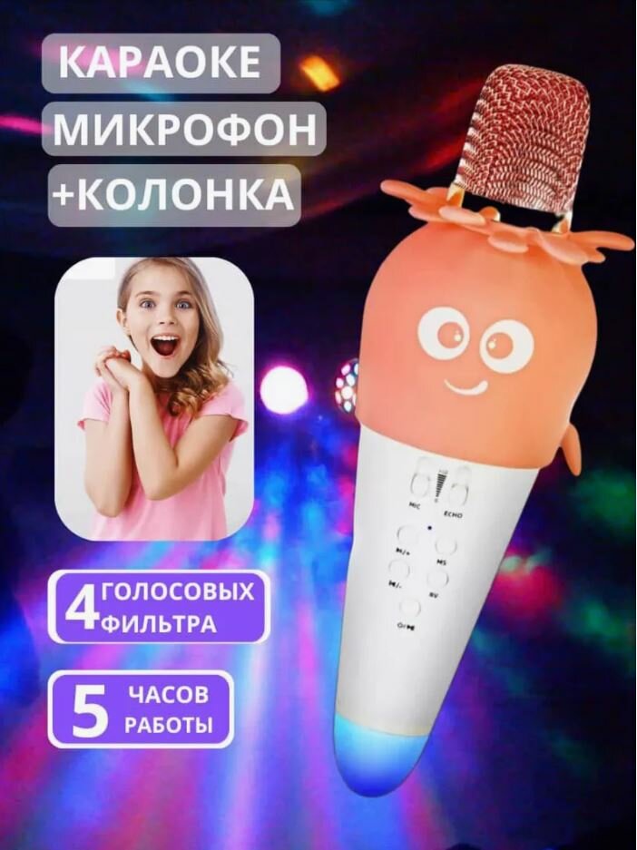 Микрофон NV_Store, детский, беспроводной, для караоке, Bluetooth, оранжевый интересное: