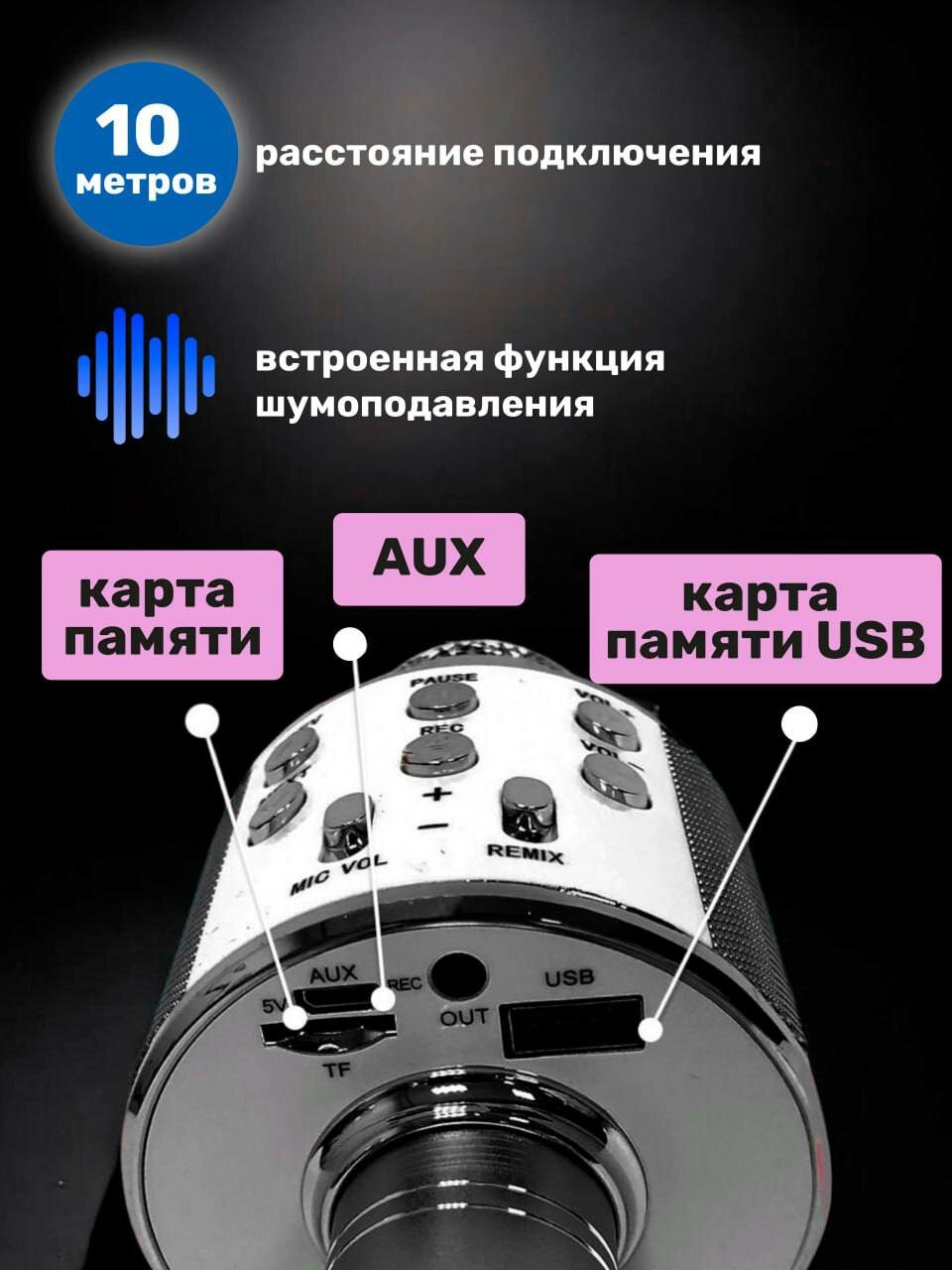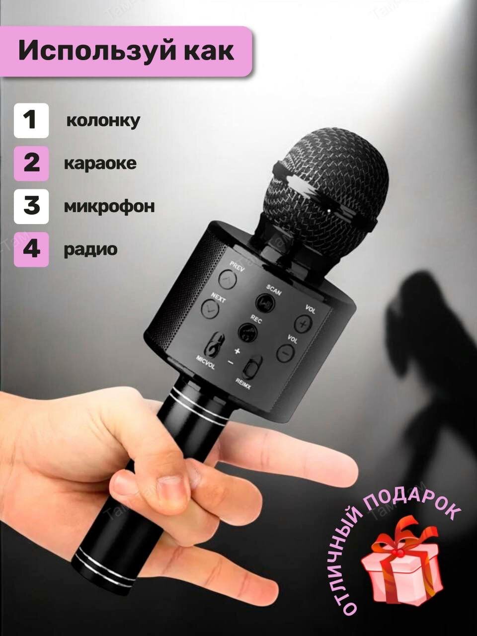 Караоке-микрофон WS-858, беспроводной, Bluetooth, 5 часов работы, черный матовый интересное: