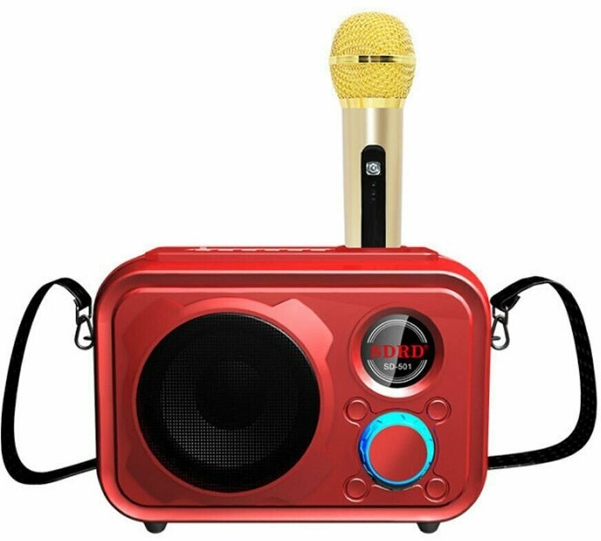 Караоке система SDRD SD-501 золотистая Bluetooth, беспроводной микрофон в комплекте интересное: