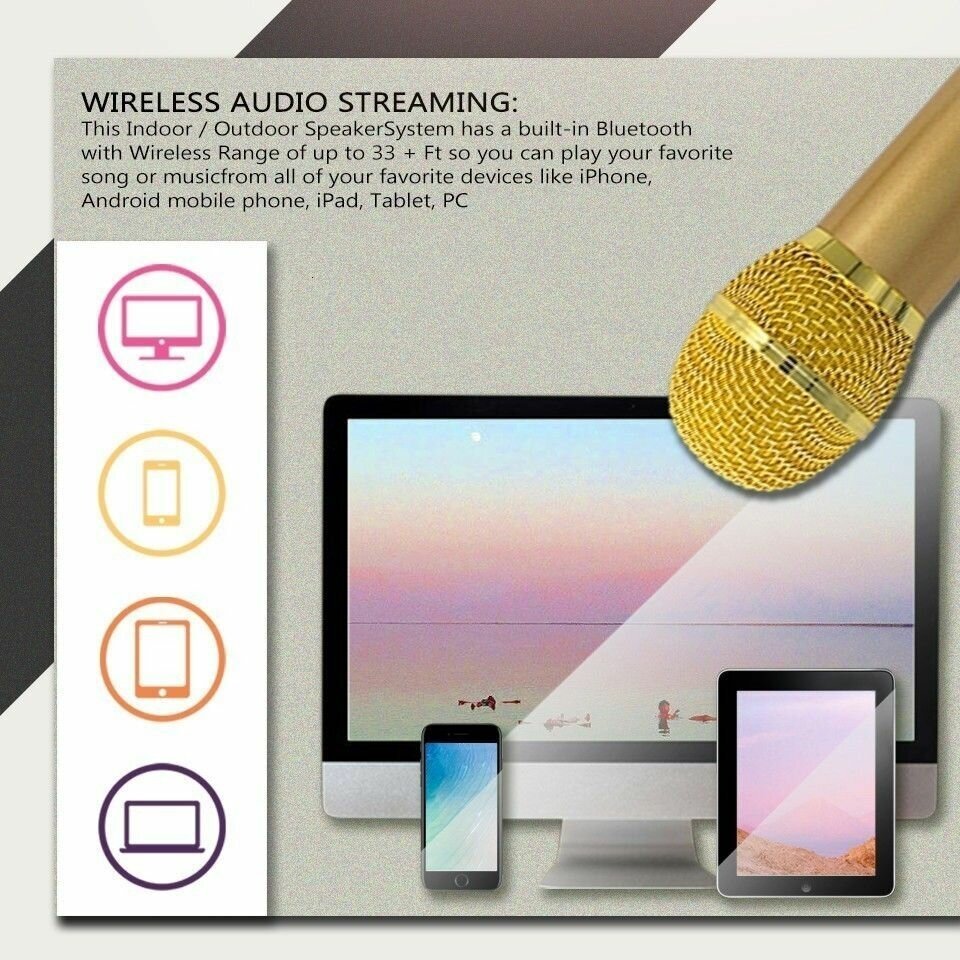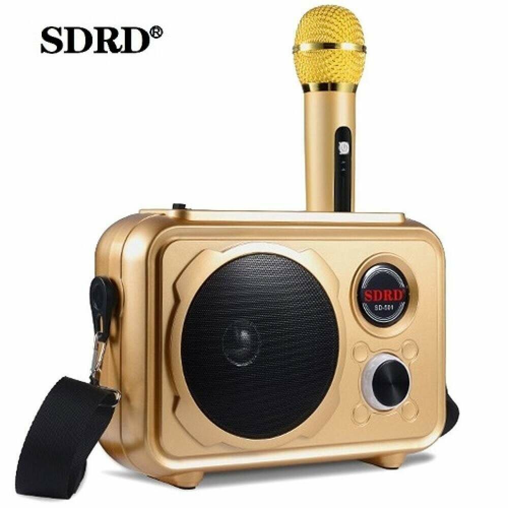 Купить Караоке система SDRD SD-501 золотистая Bluetooth, беспроводной микрофон в комплекте