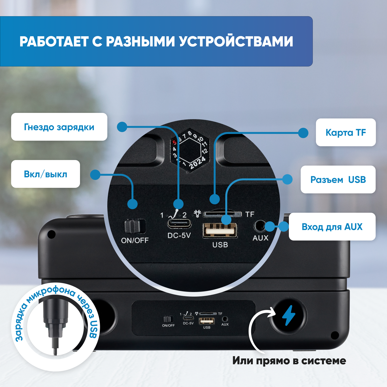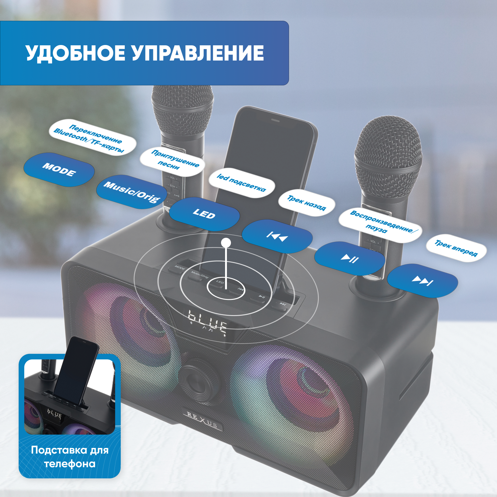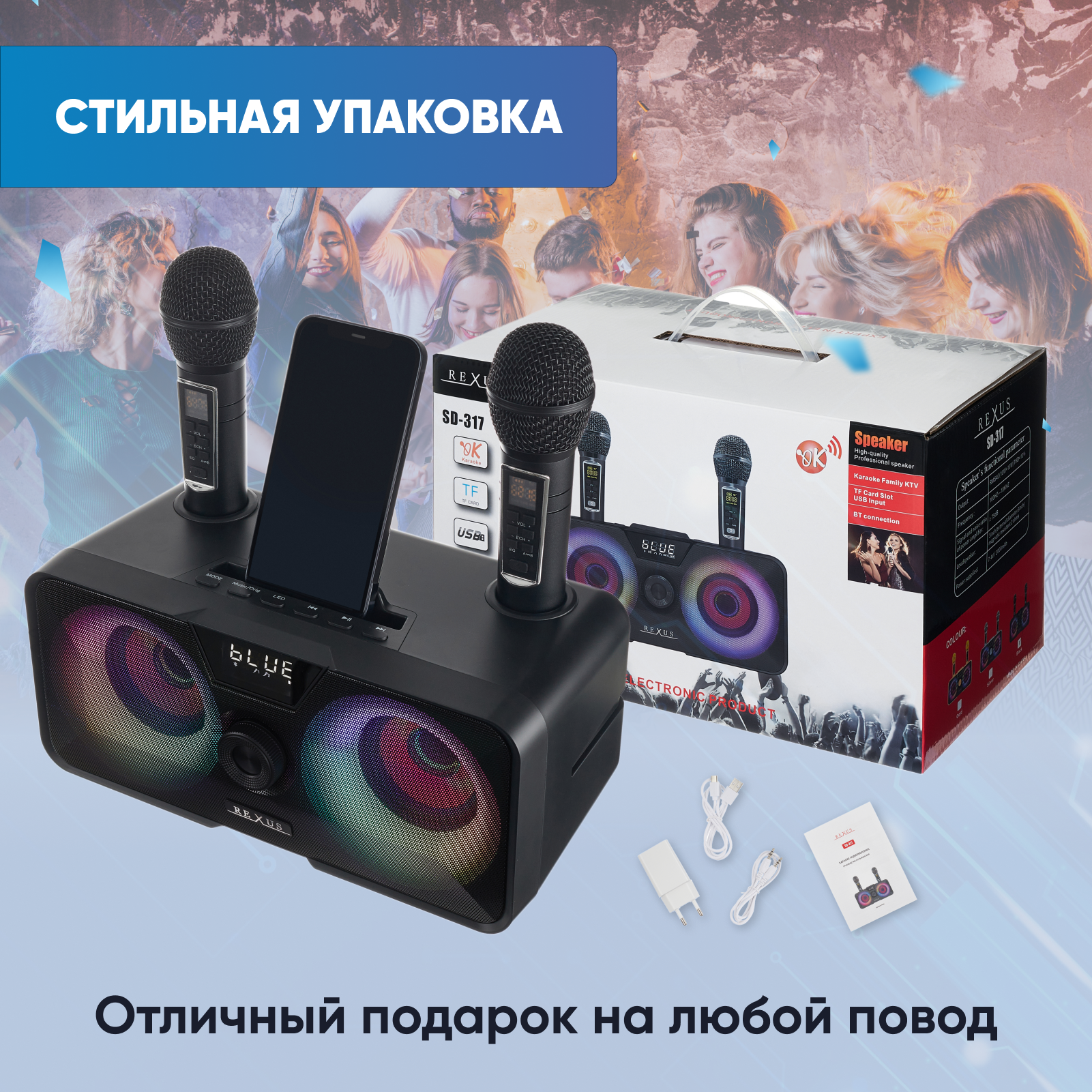 REXUS SD-317 - караоке колонка, LED подсветка, Bluetooth, AUX интересное: