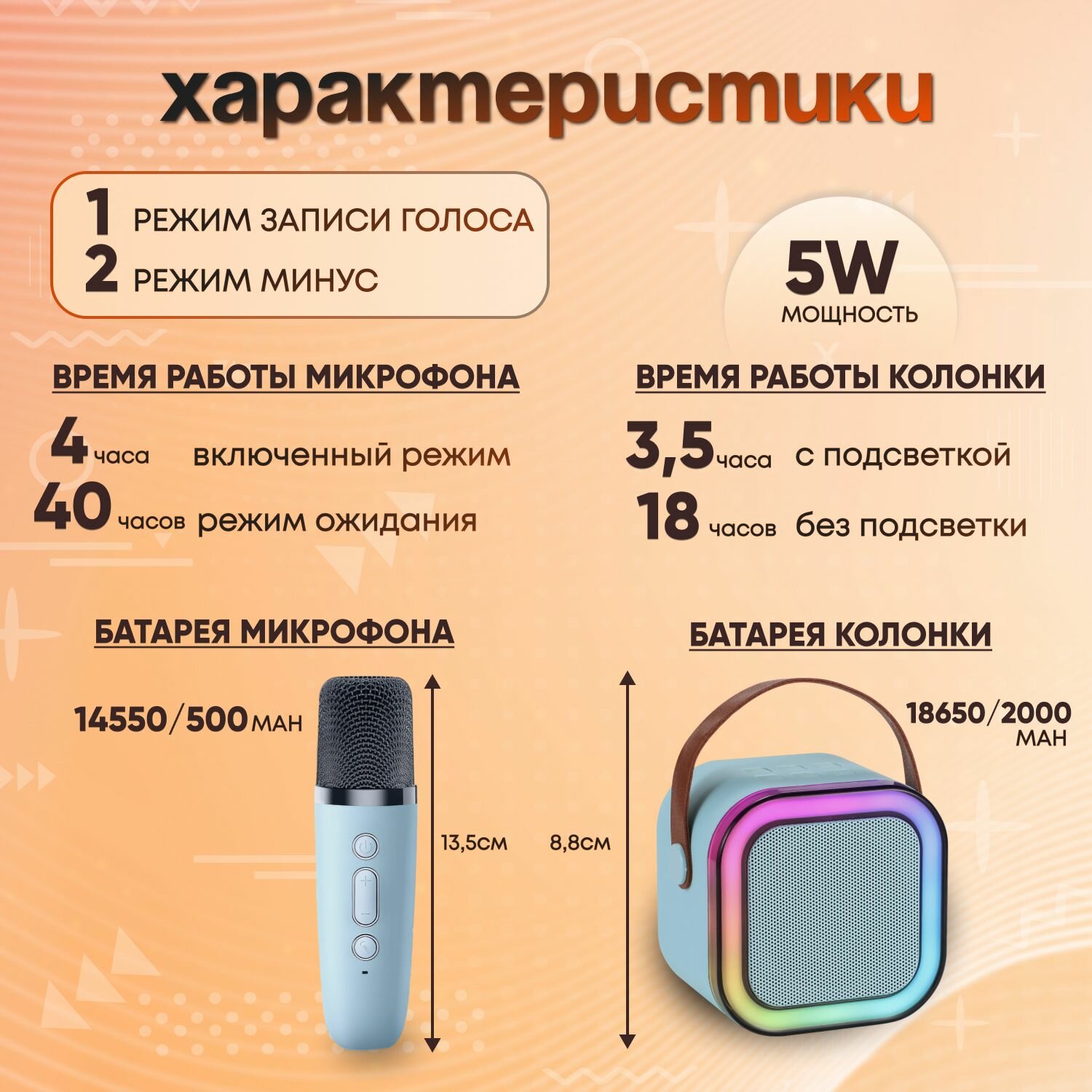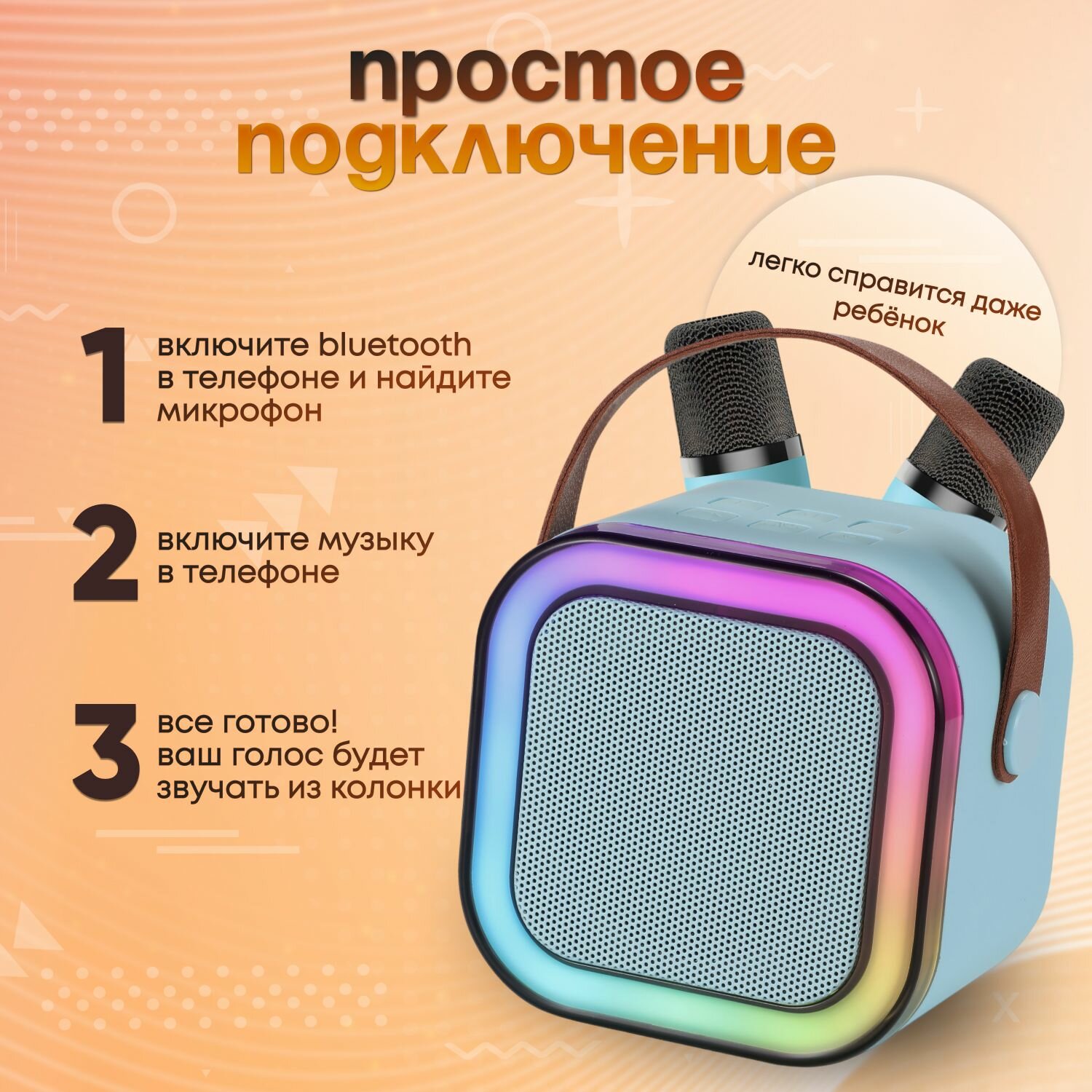 Детская караоке система с двумя беспроводными микрофонами и колонкой (синий) интересное: