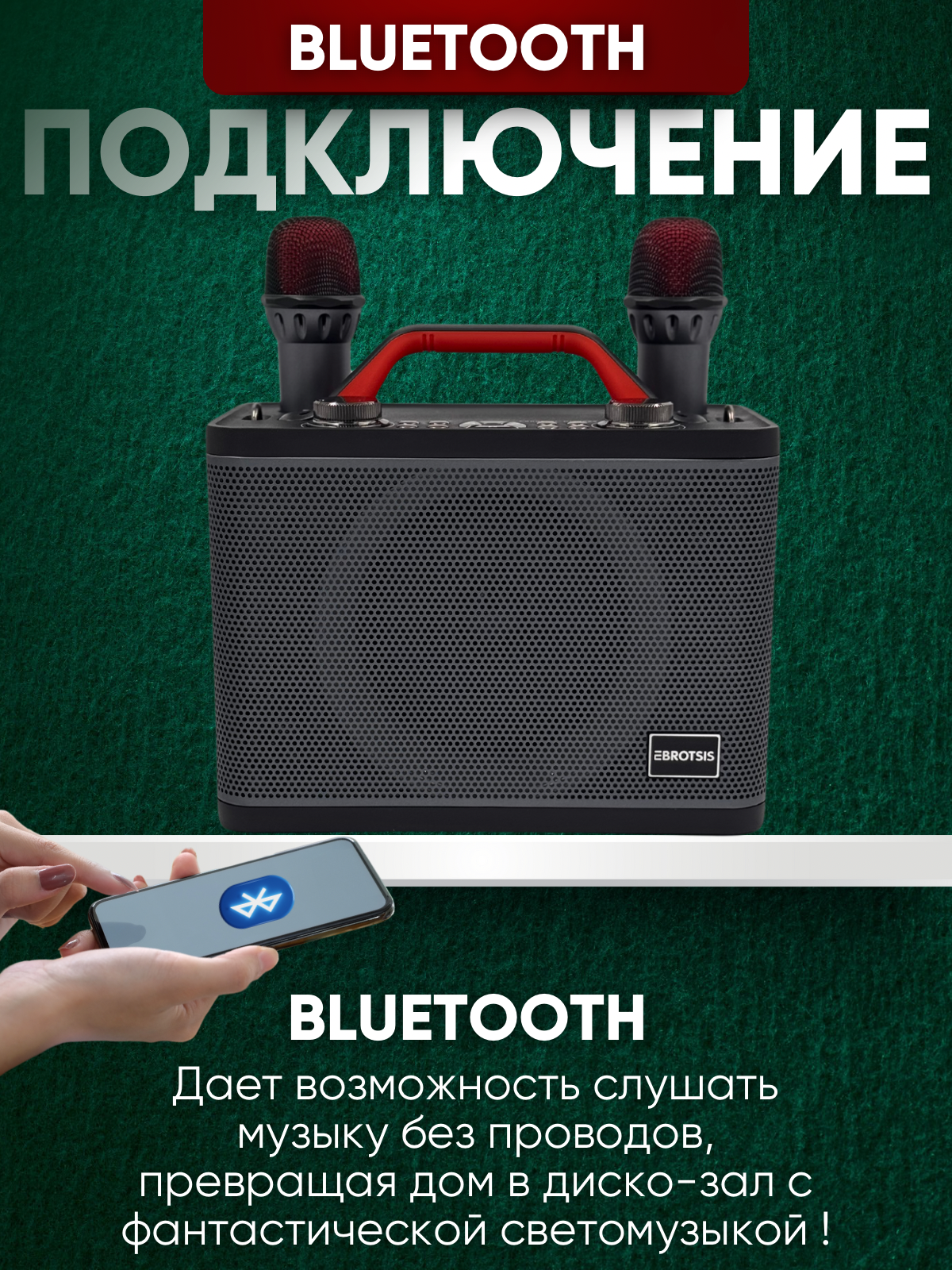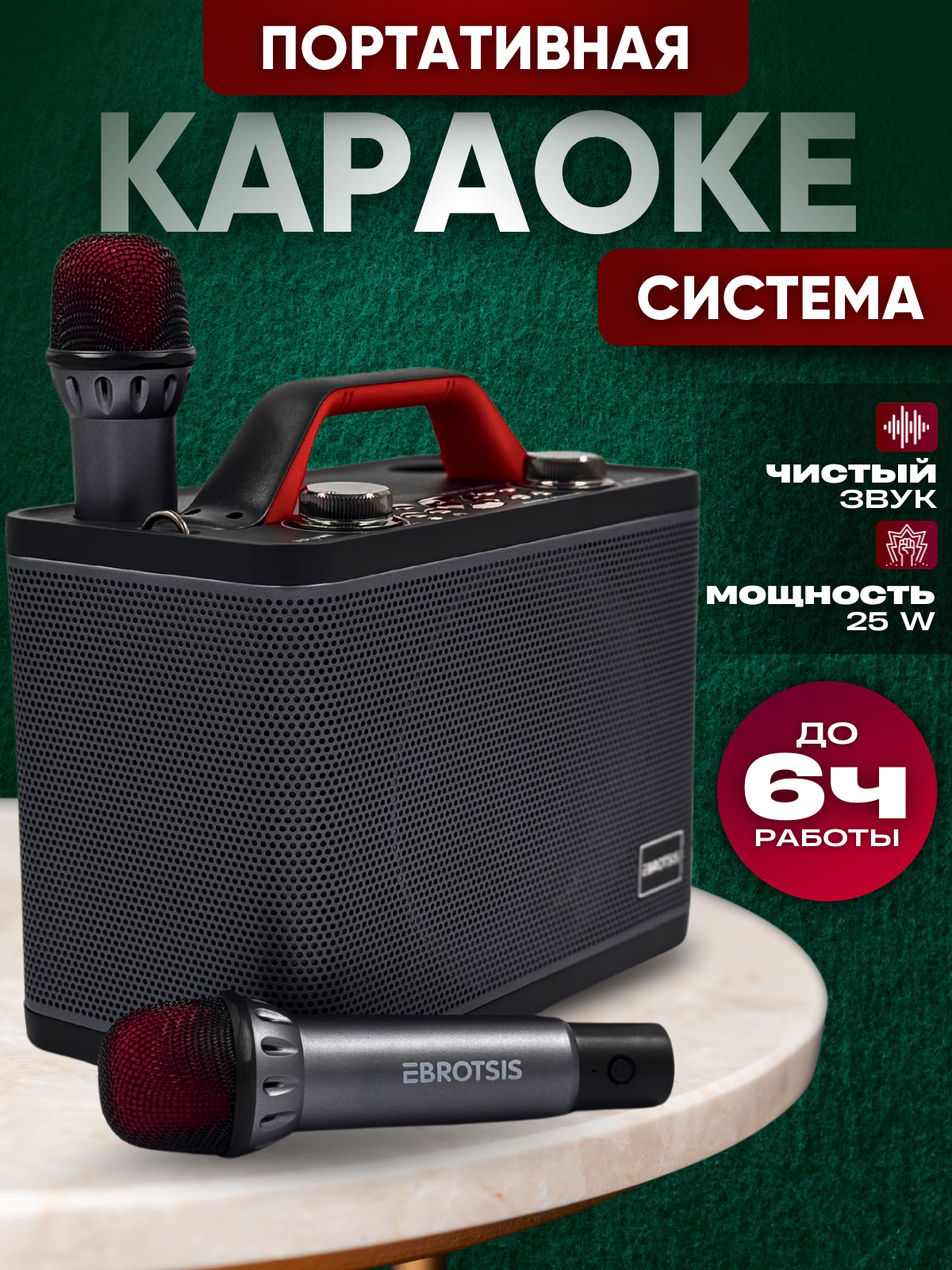 Караоке-система Menron ET-001, портативная, беспроводная, 2 микрофона, черная интересное: