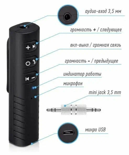 Bluetooth ресивер AUX BT-03 JBH / Bluetooth адаптер с микрофоном для компьютера, для домашней акустики, для автомобиля интересное: