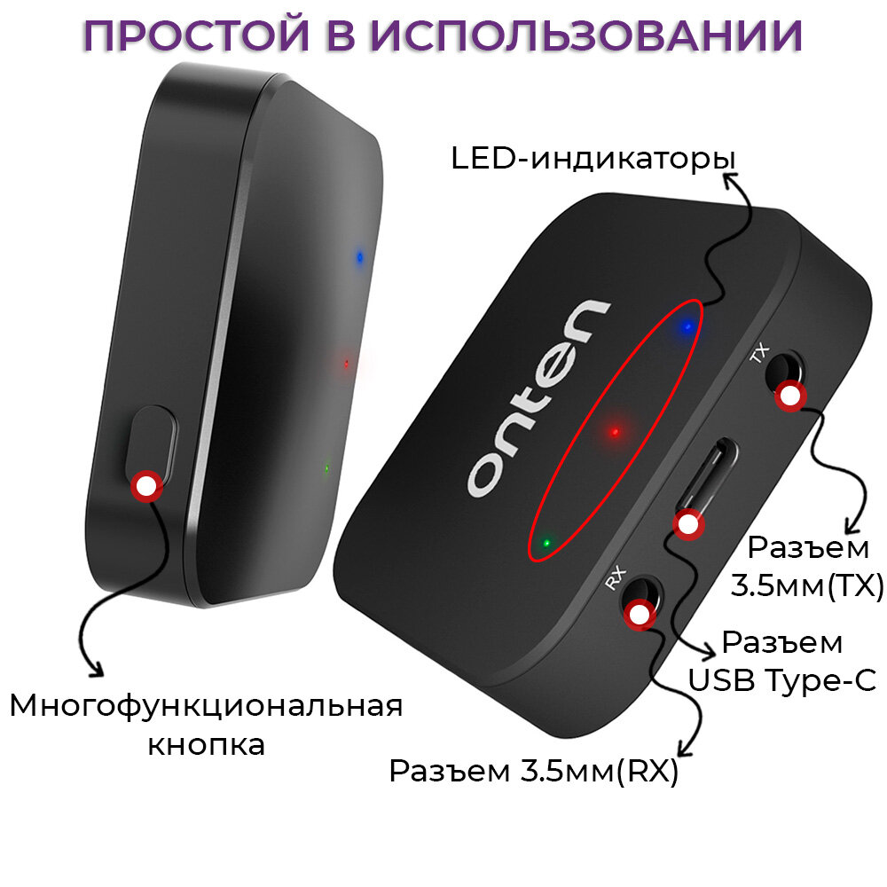 Аудио Bluetooth адаптер AUX Onten для ПК, телевизора, наушников, акустики интересное: