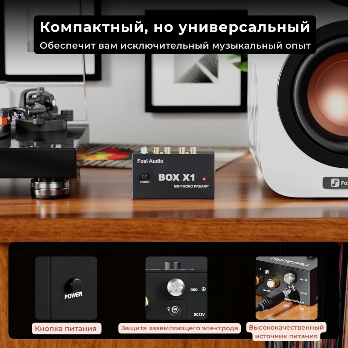 Fosi Audio фонокорректор Box X1 для винилового проигрывателя, MM, RIAA коррекция, RCA выход, 12В питание интересное: