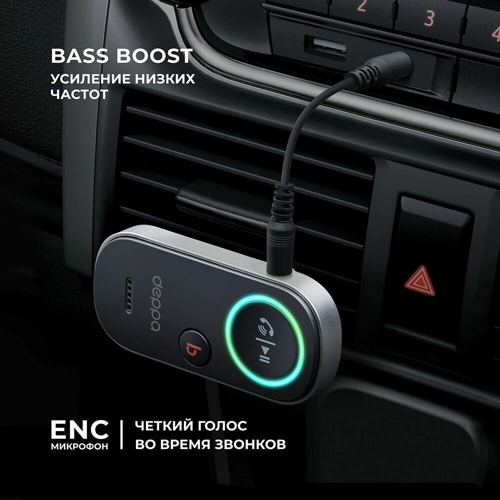 Адаптер Aux Bluetooth ресивер Car Kit, ENC, Bass boost, USB/AUX, черный, Без заводской паковки, Deppa 44420-OZ