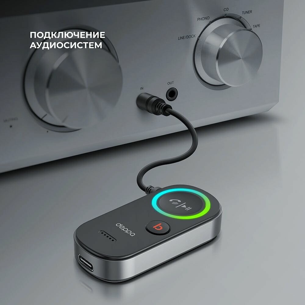 Адаптер Aux Bluetooth ресивер Lite , Type-C, ENC, Bass boost, 150 мАч, черный, Без заводской паковки, Deppa 44410-OZ интересное: