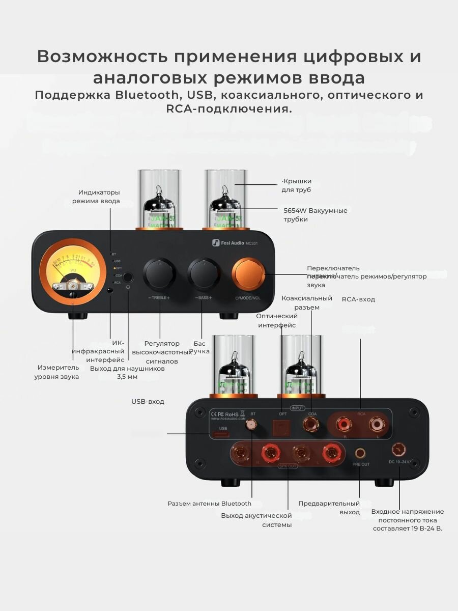 Fosi Audio усилитель MC331 с ЦАП и Bluetooth, 24В/4.5А блок питания интересное: