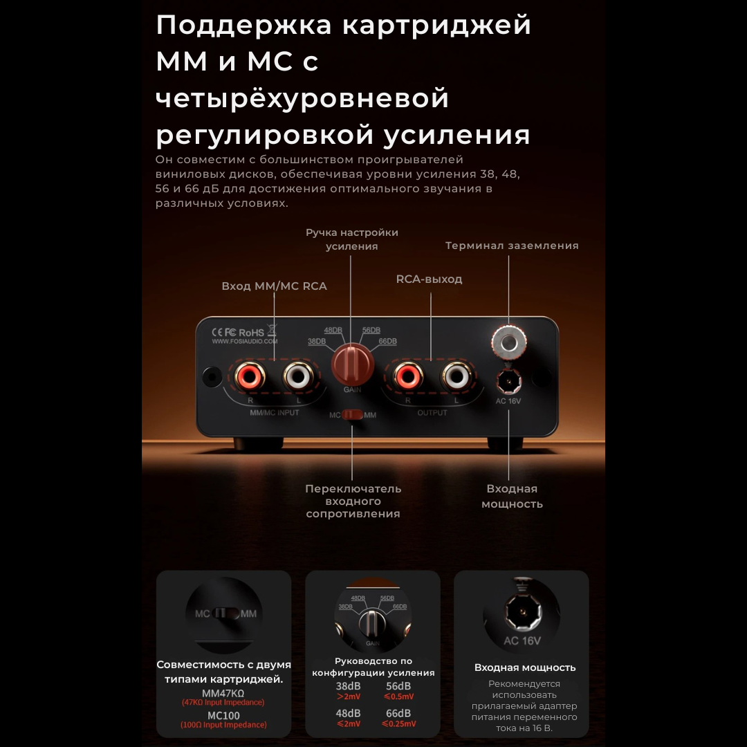 Fosi Audio фонокорректор Box X5 для винилового проигрывателя, MM/MC, стерео интересное: