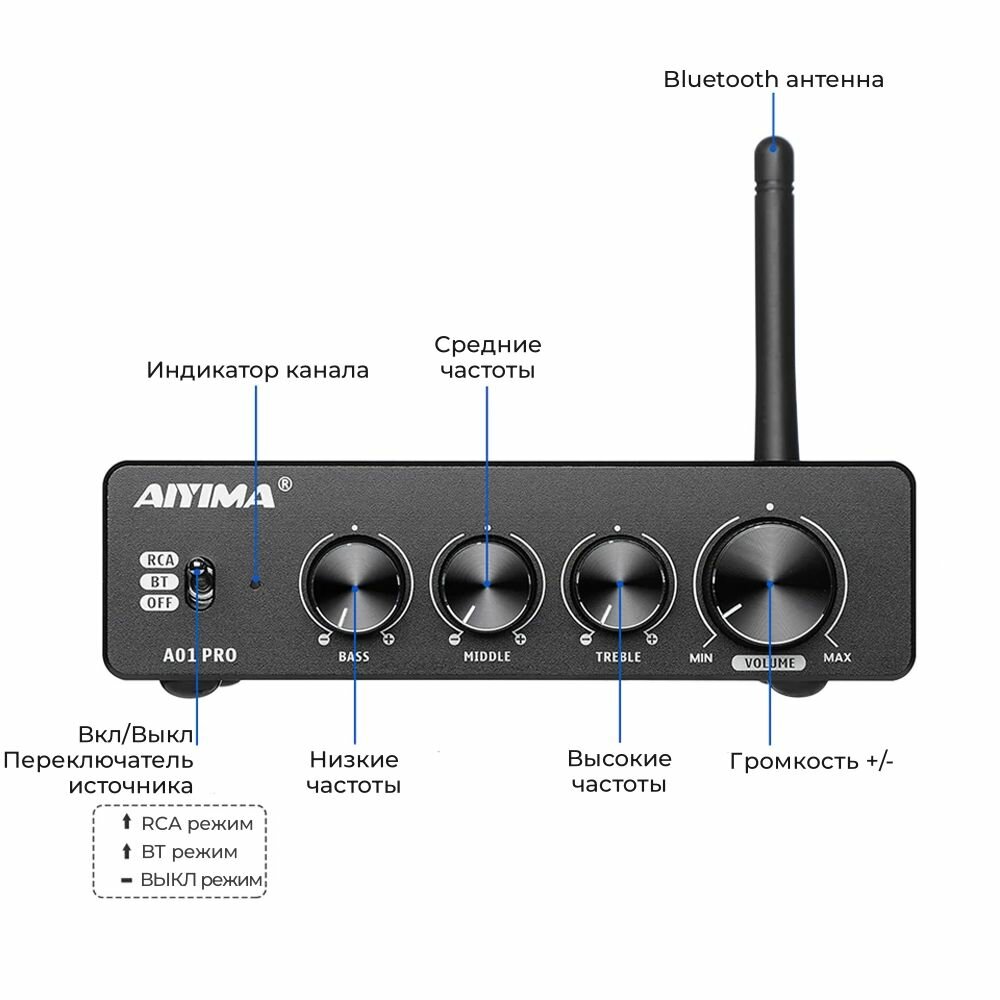 Усилитель AIYIMA A01 Pro с блоком питания 24В/4А интересное: