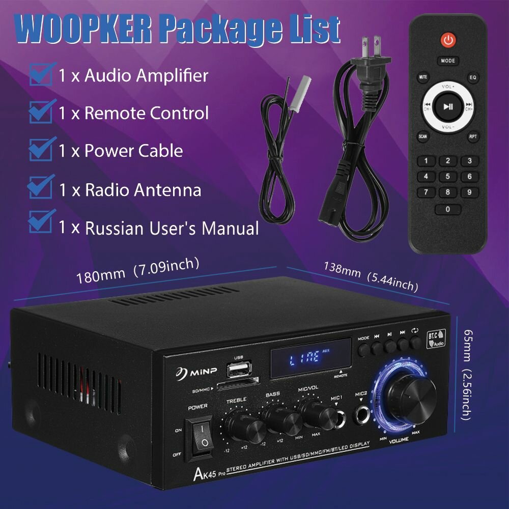 Ниже Вы можете прочитать отзывы на Yсилитель звука,2.1, интегральный усилительAK45Pro, FM/RCA/SD, bluetooth5.3,500W+500W, ознакомится с подробными характеристиками, посмотреть интересные обзоры и фотографии на Yсилитель звука,2.1, интегральный усилительAK45Pro, FM/RCA/SD, bluetooth5.3,500W+500W.